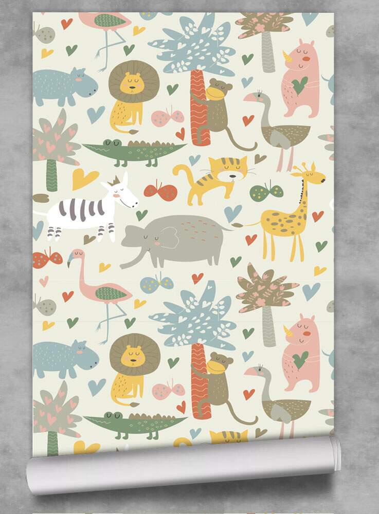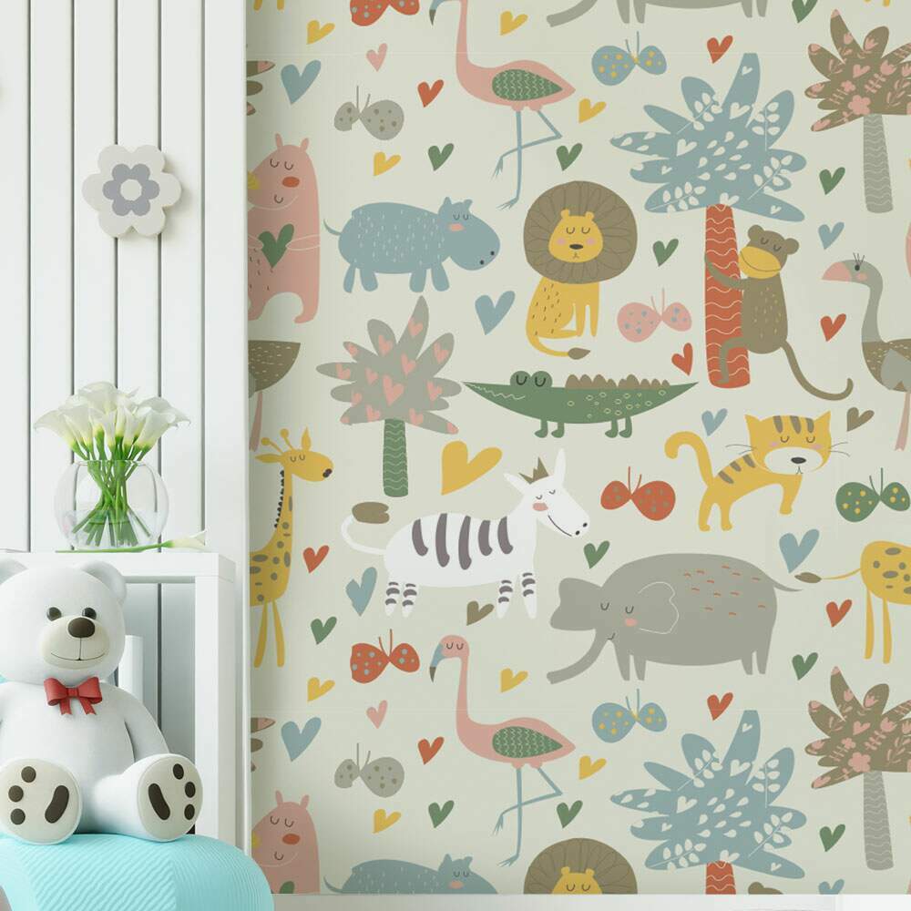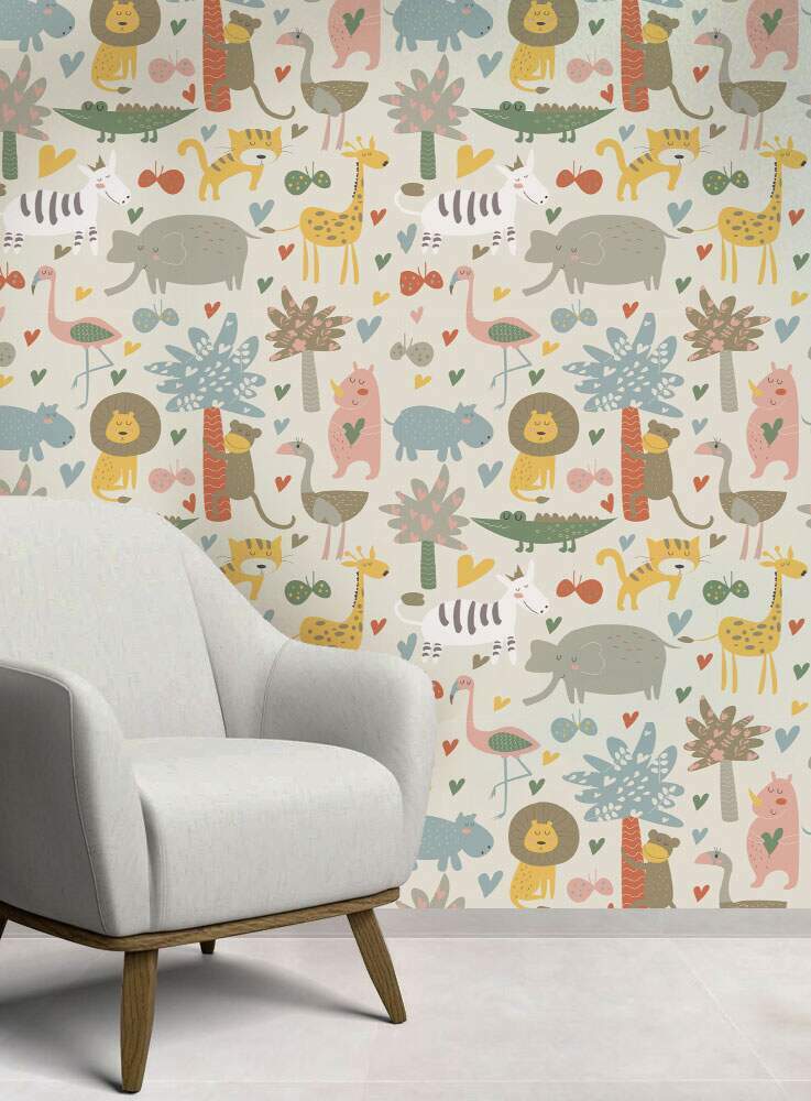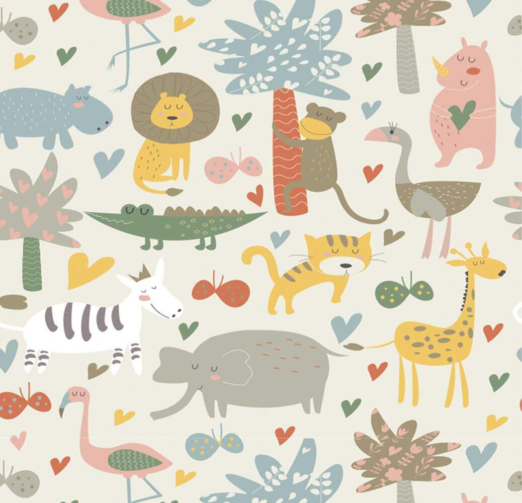 Papel de Parede Infantil Mod - 322 Safári Animais Coloridos