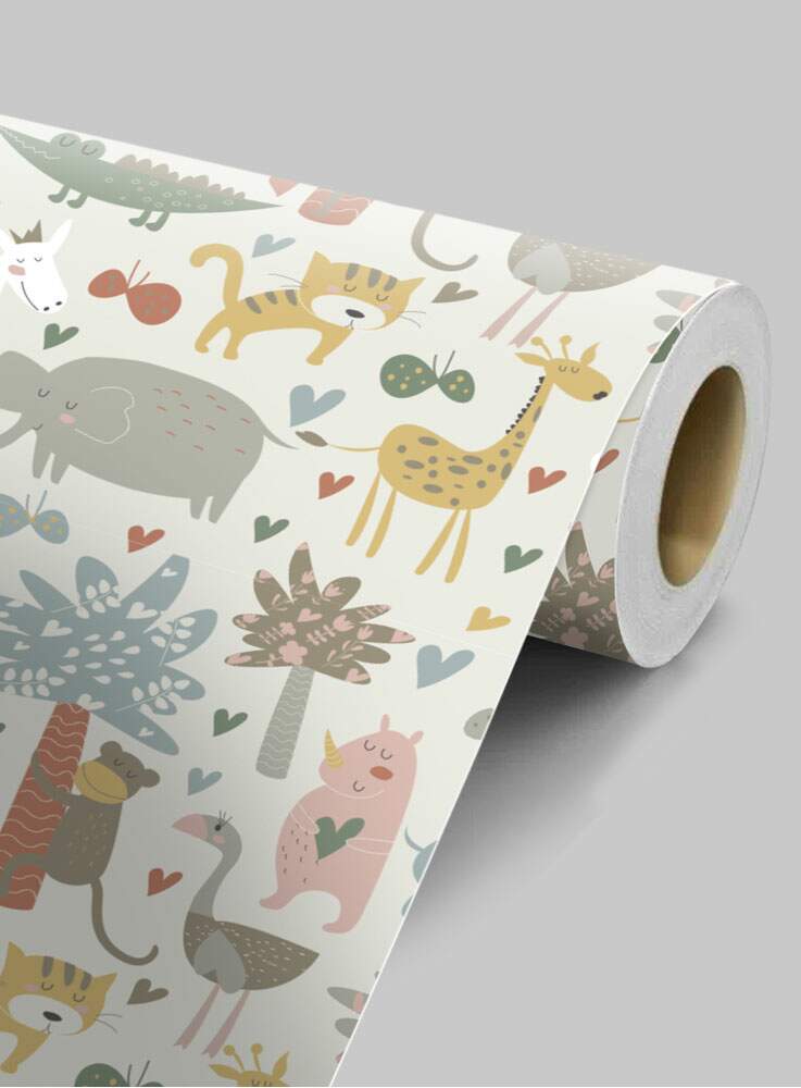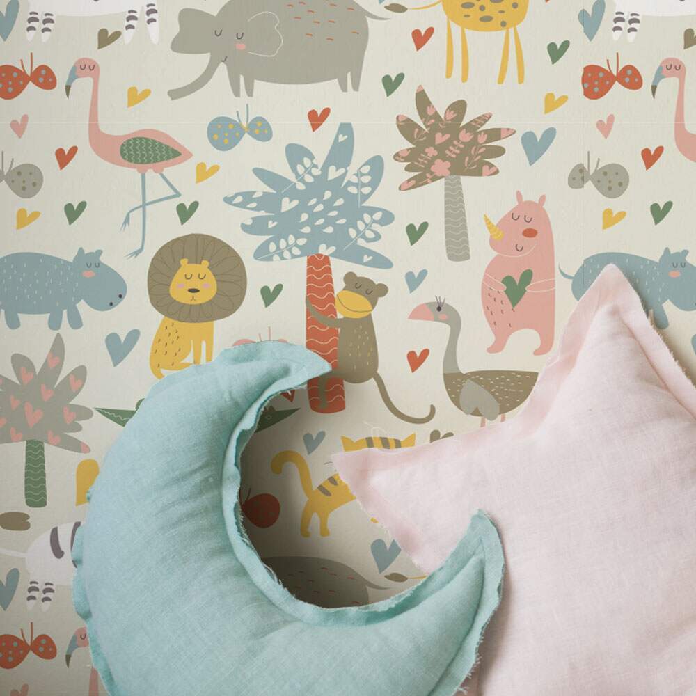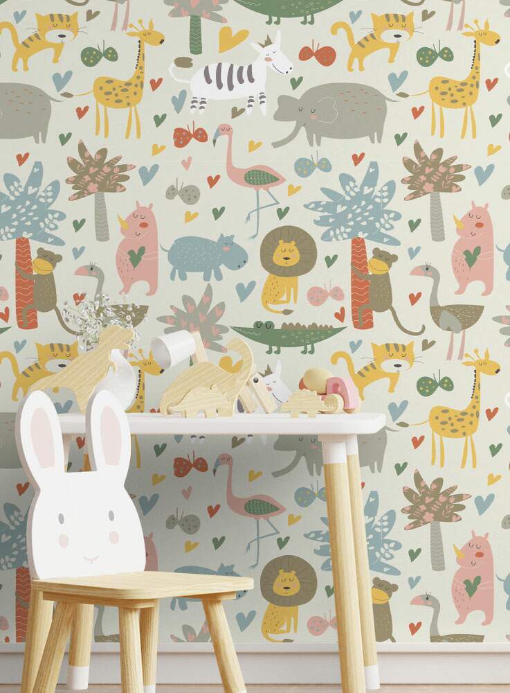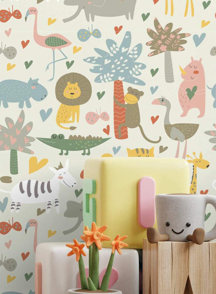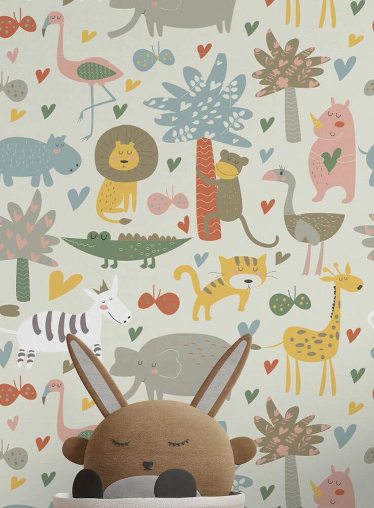 Papel de Parede Infantil Mod - 322 Safári Animais Coloridos