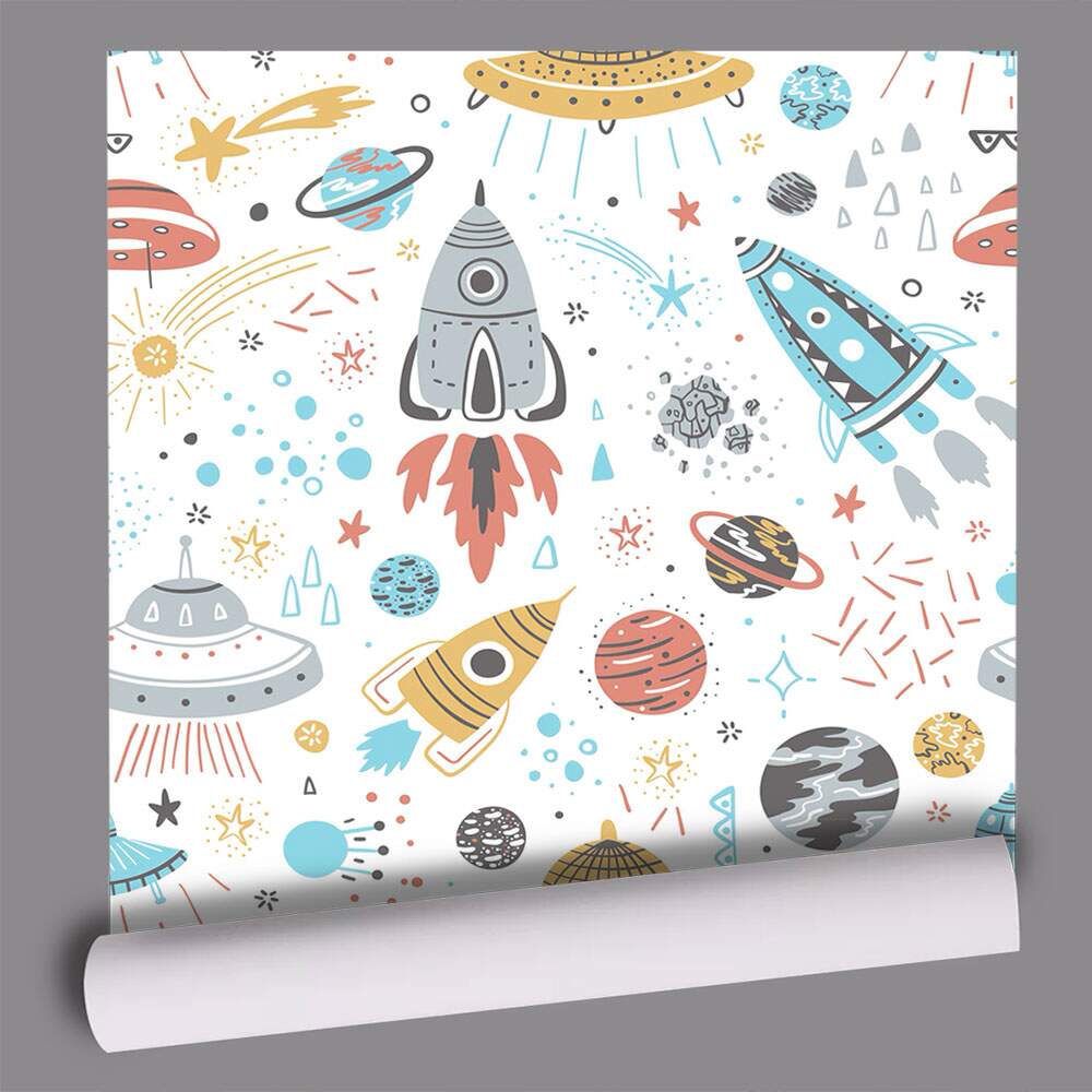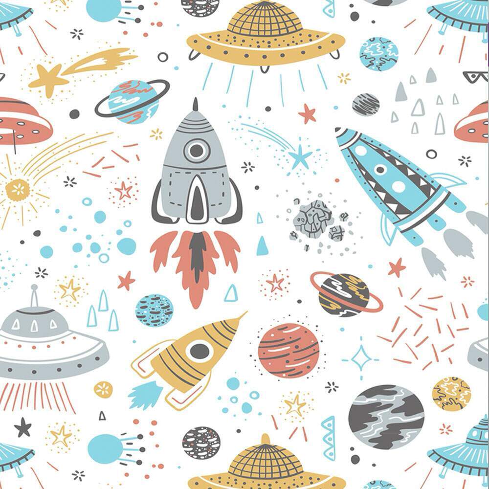 Papel de Parede Infantil Planetas e Foguetes Coloridos