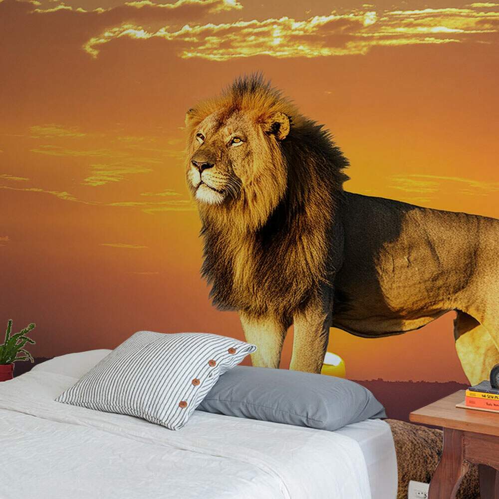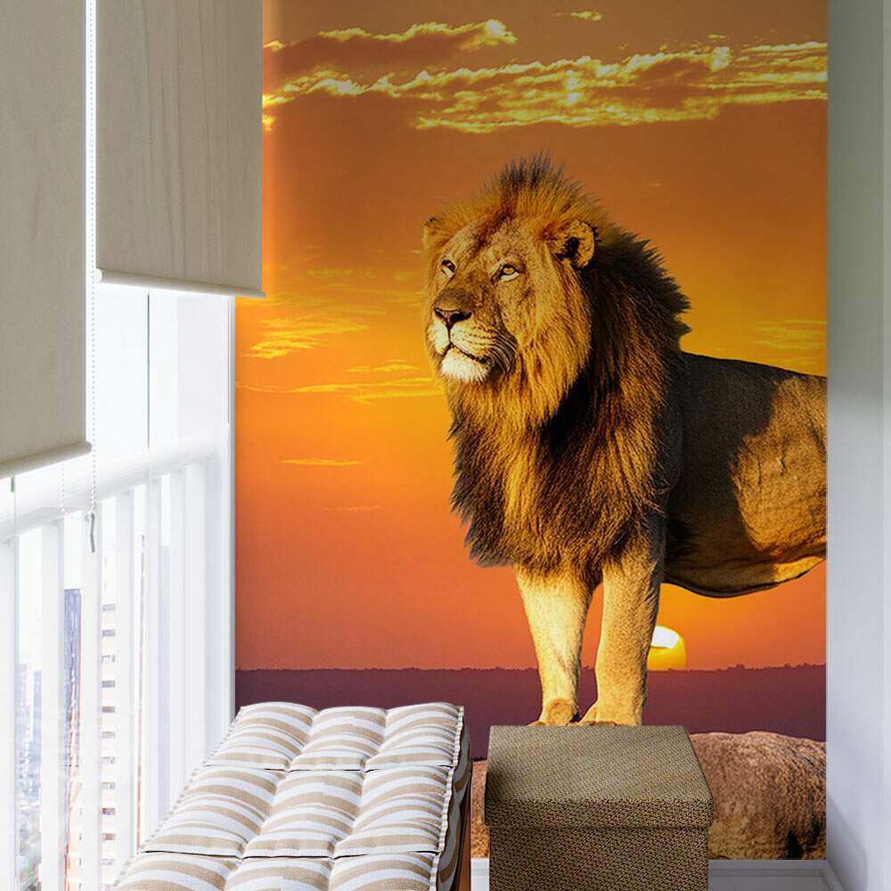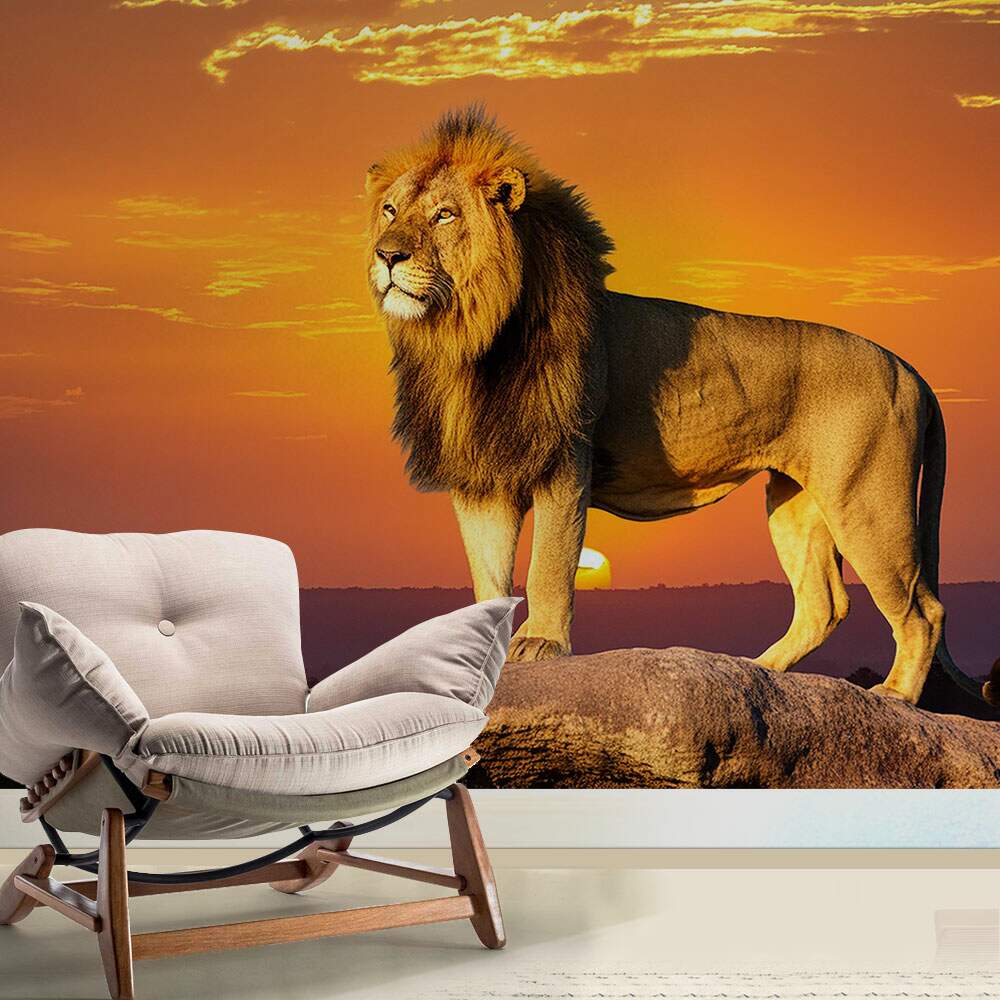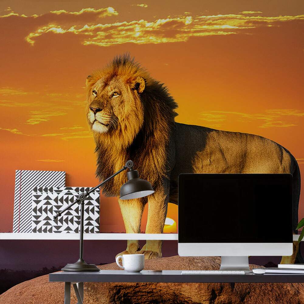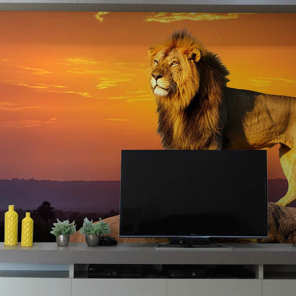 Papel de Parede Leão na Pedra Por do Sol MP