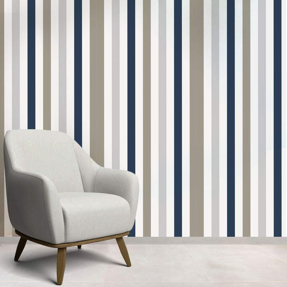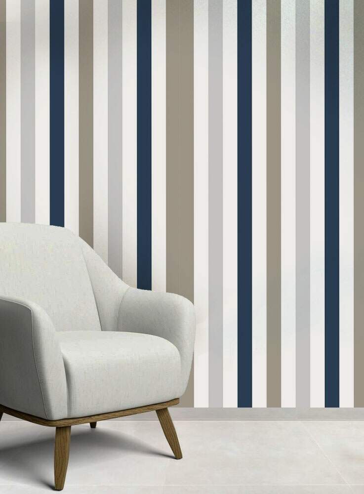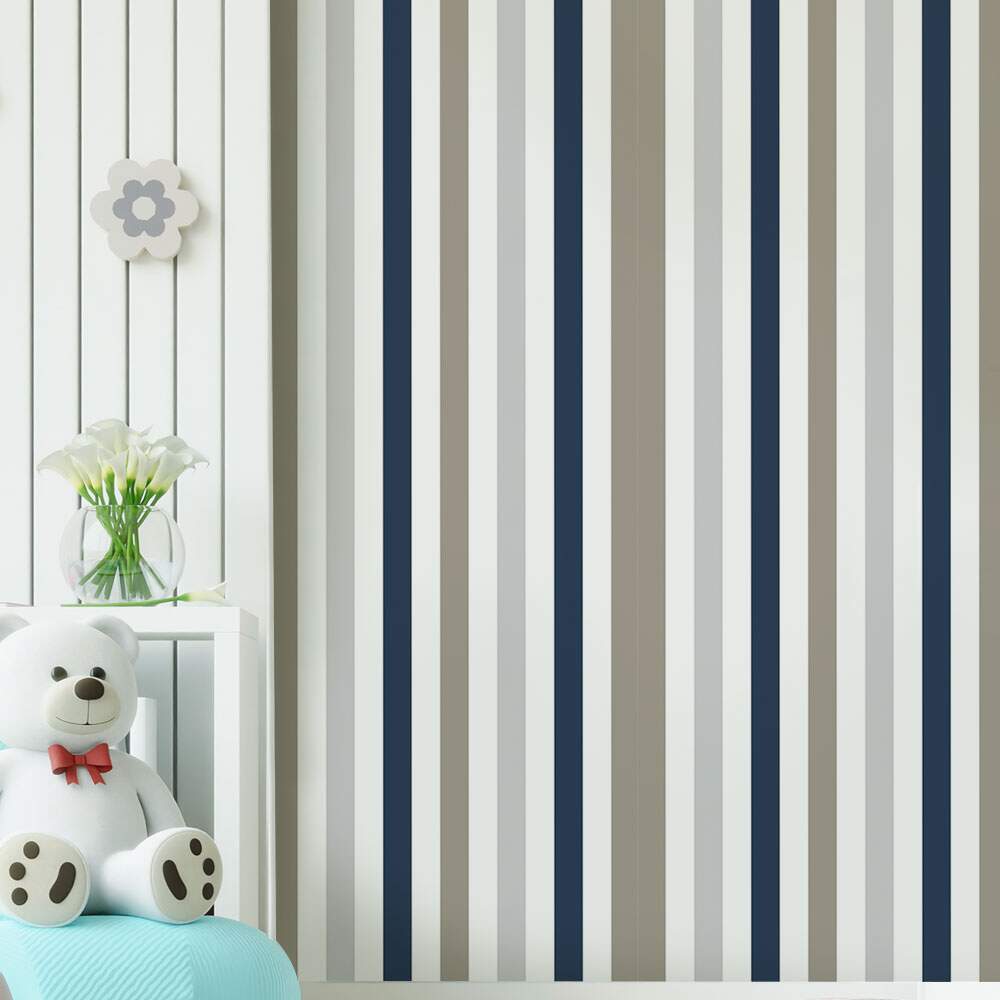 Papel de Parede Listras Modelo 145 Cinza e Azul