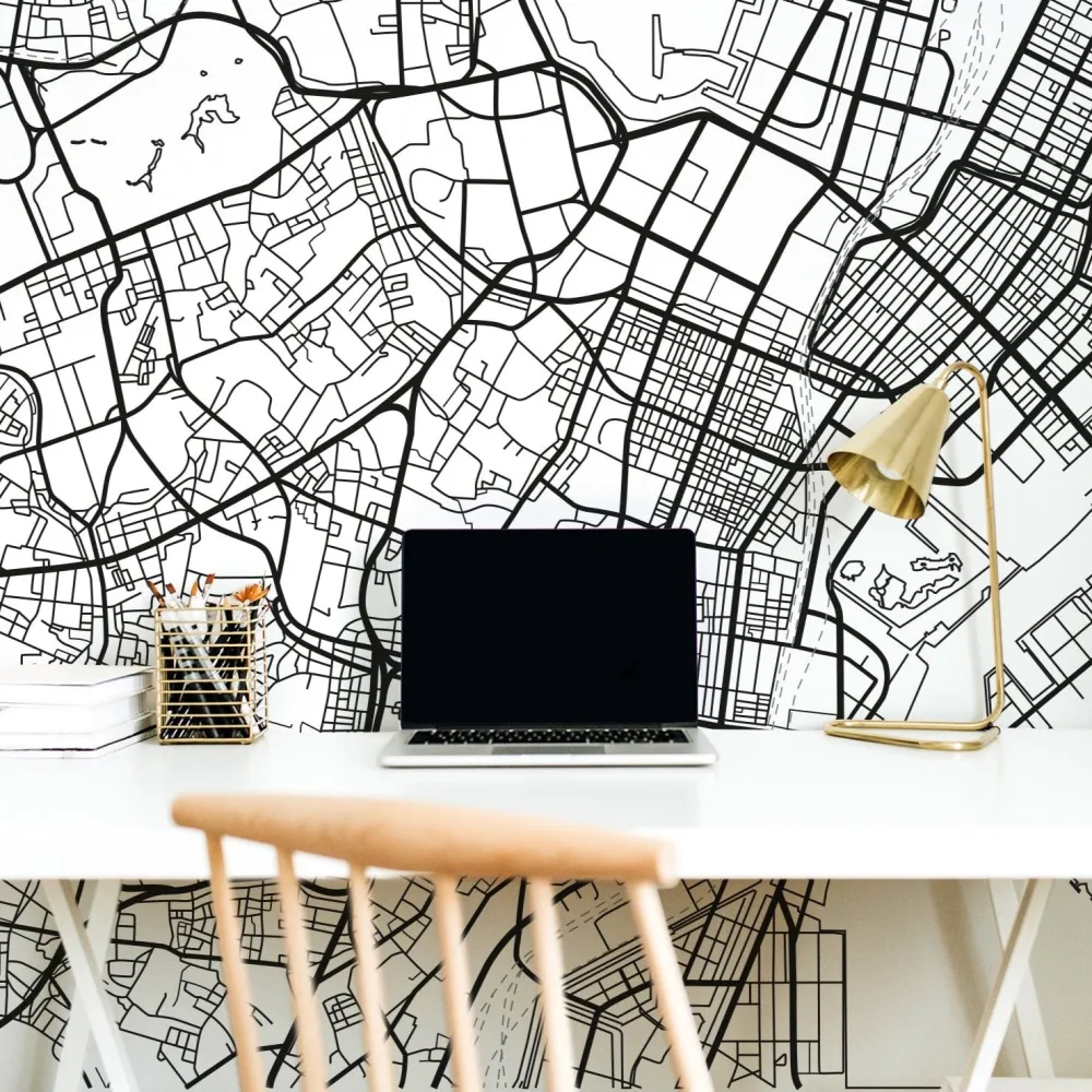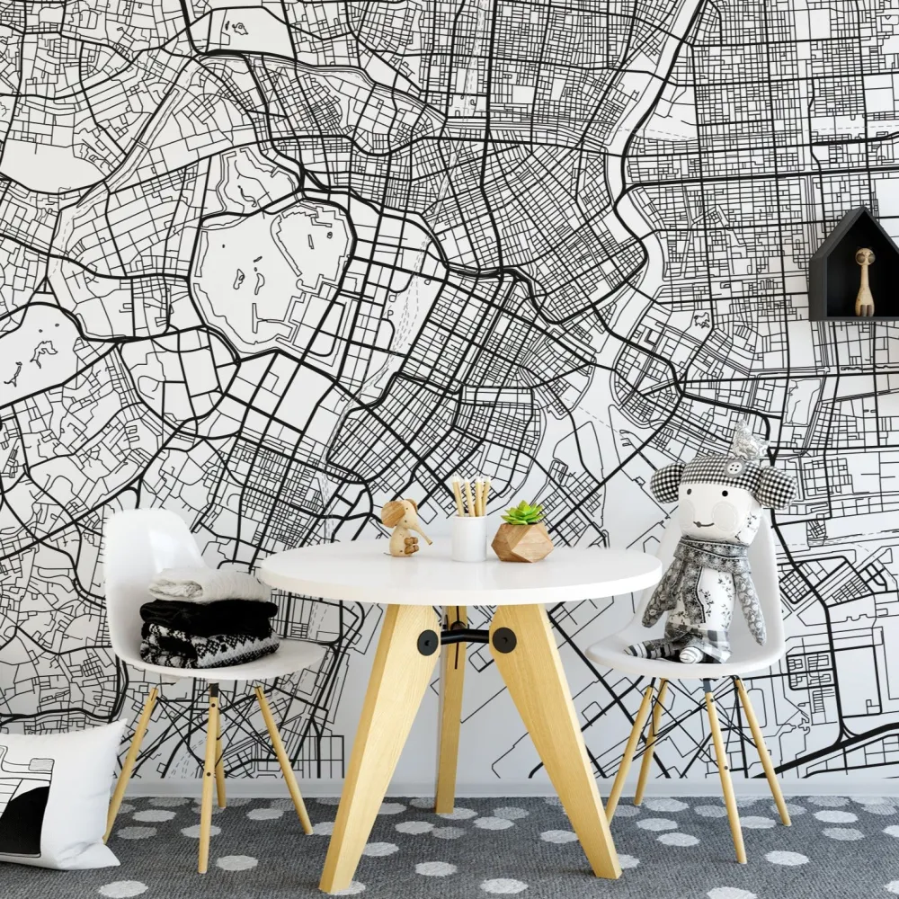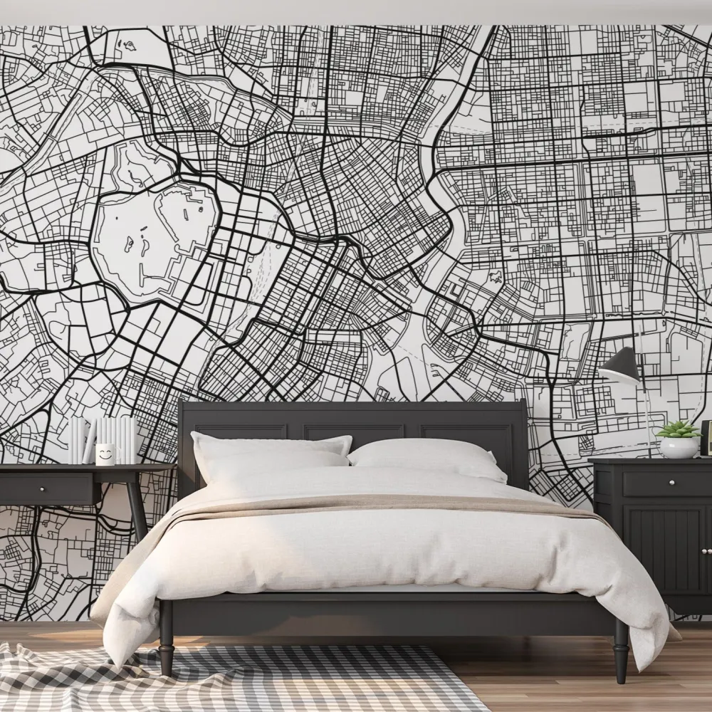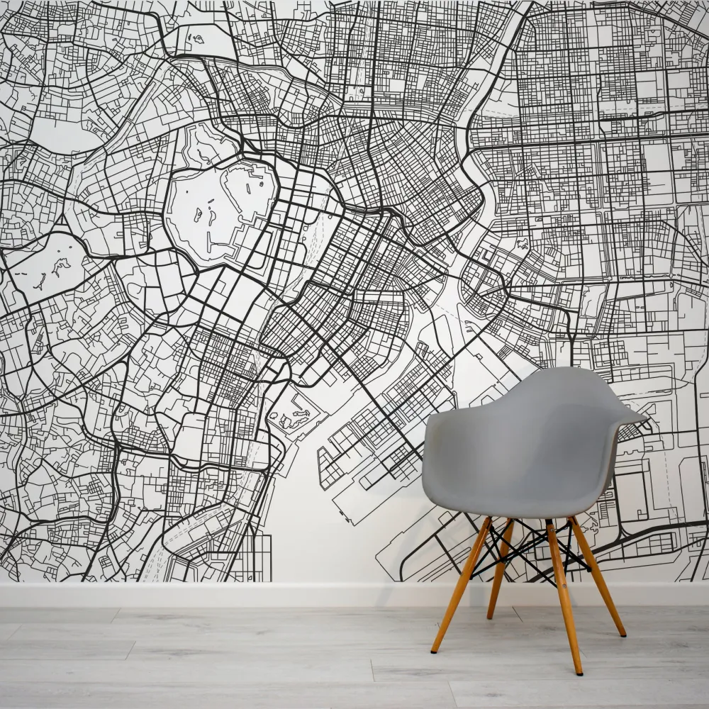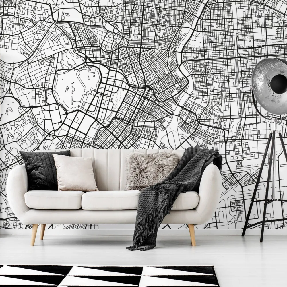 Papel de Parede Mapa da Cidade de Tóquio em Preto e Branco MP