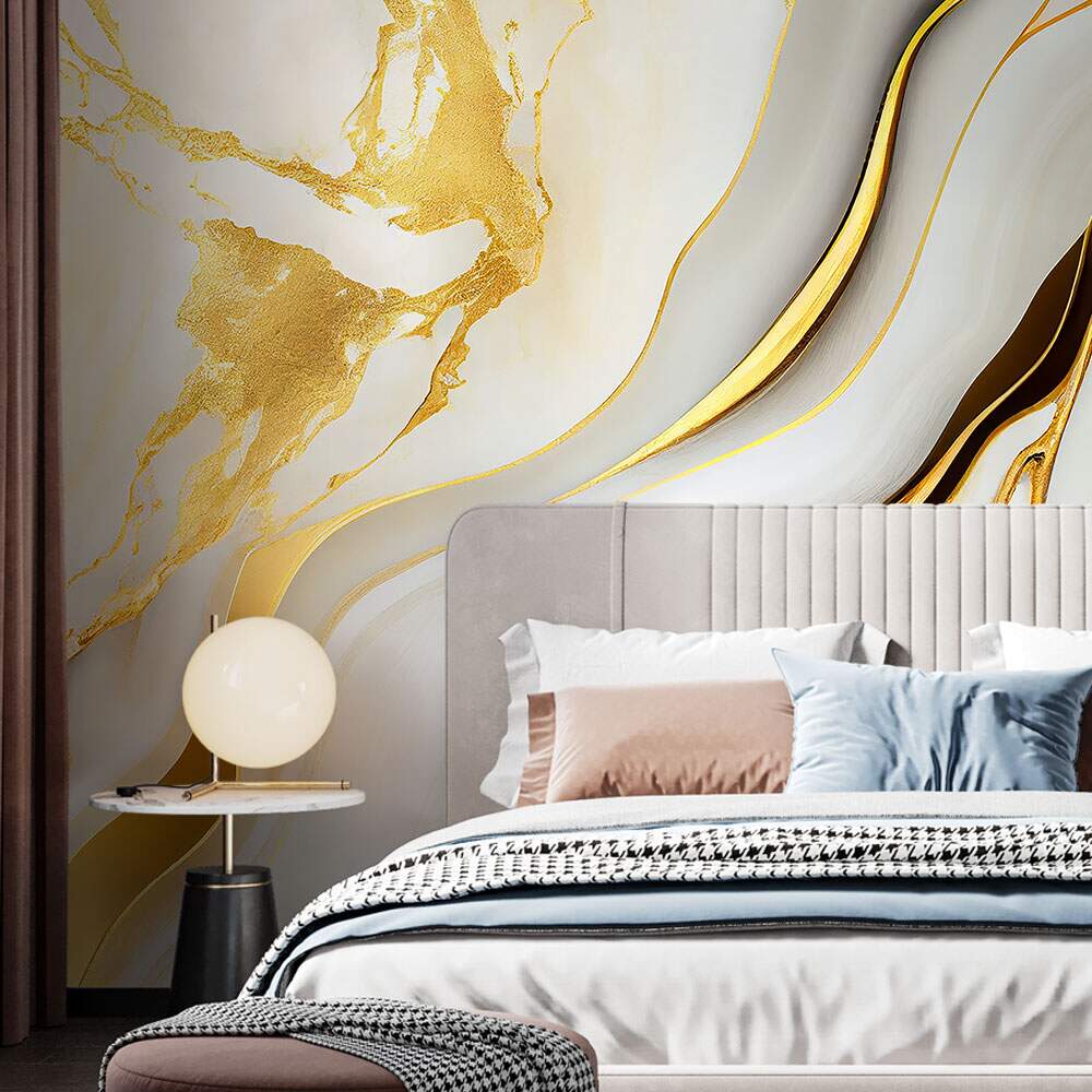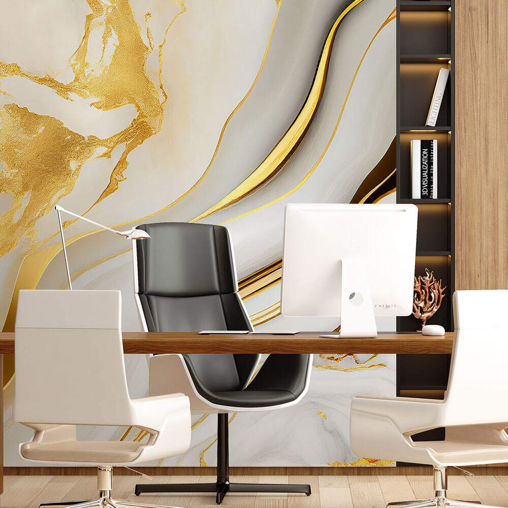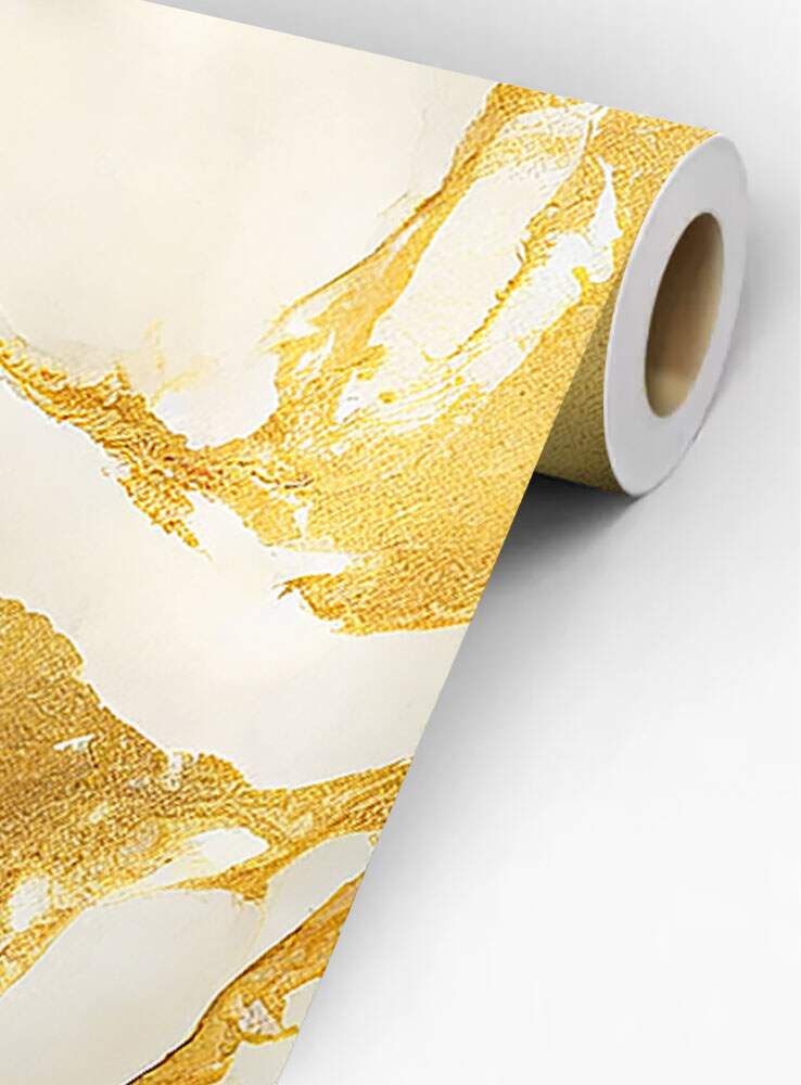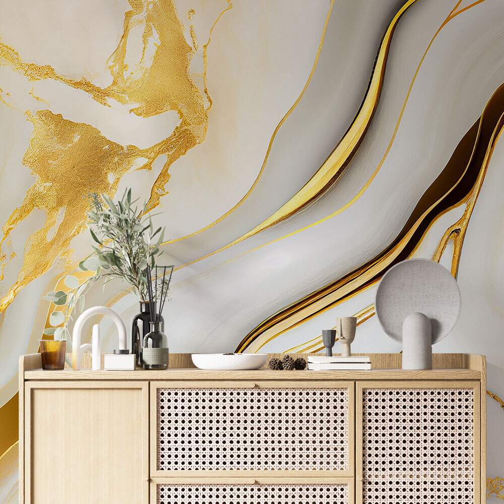 Papel de Parede Mármore Estilo Ondas em Dourado e Branco MP