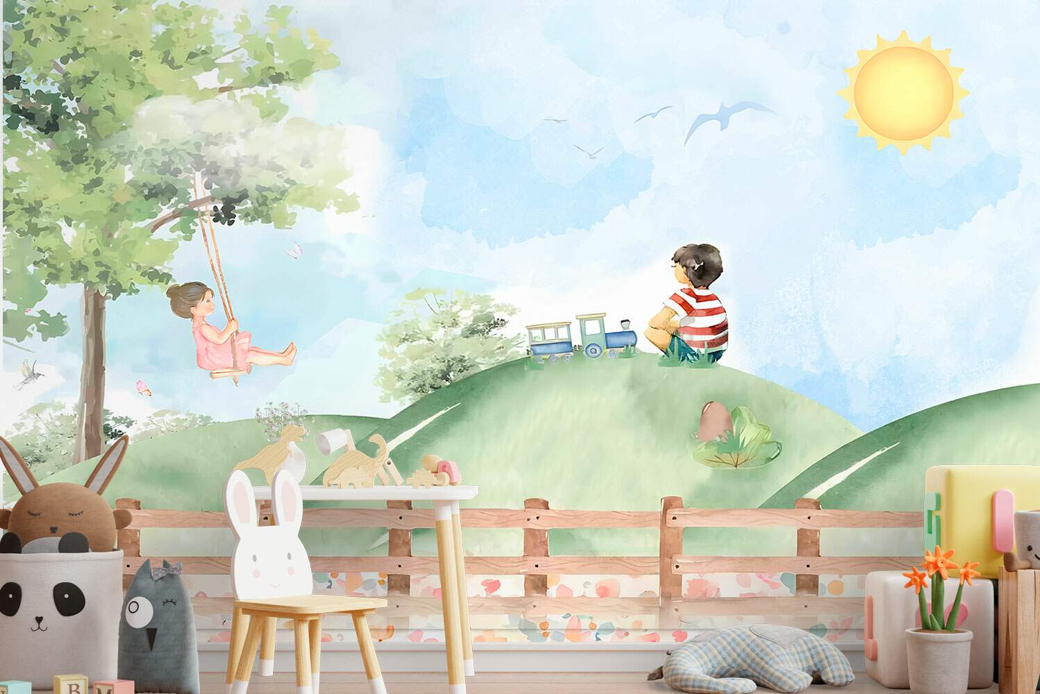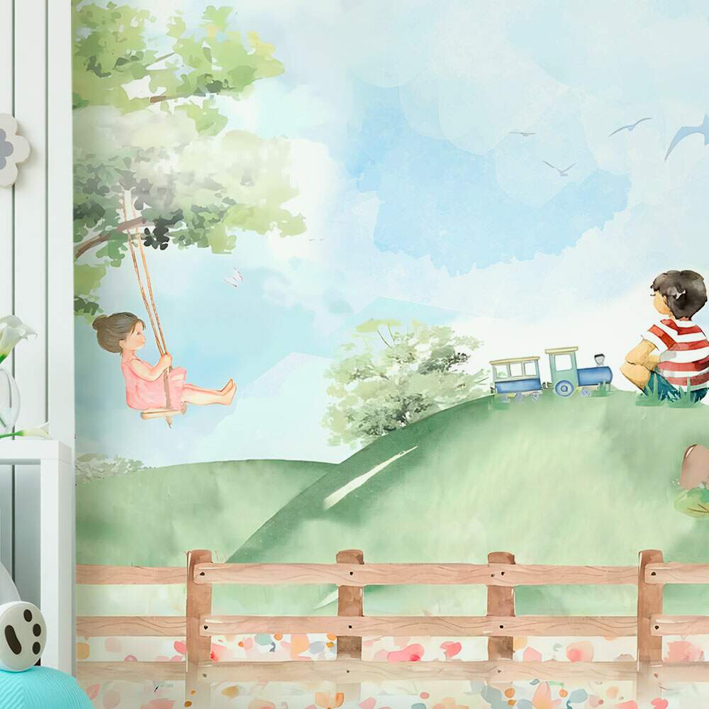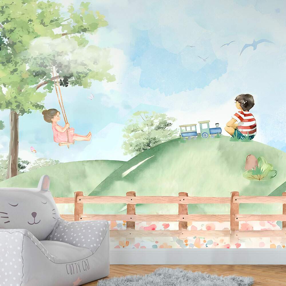 papel de parede menino e menina no campo brincado MP