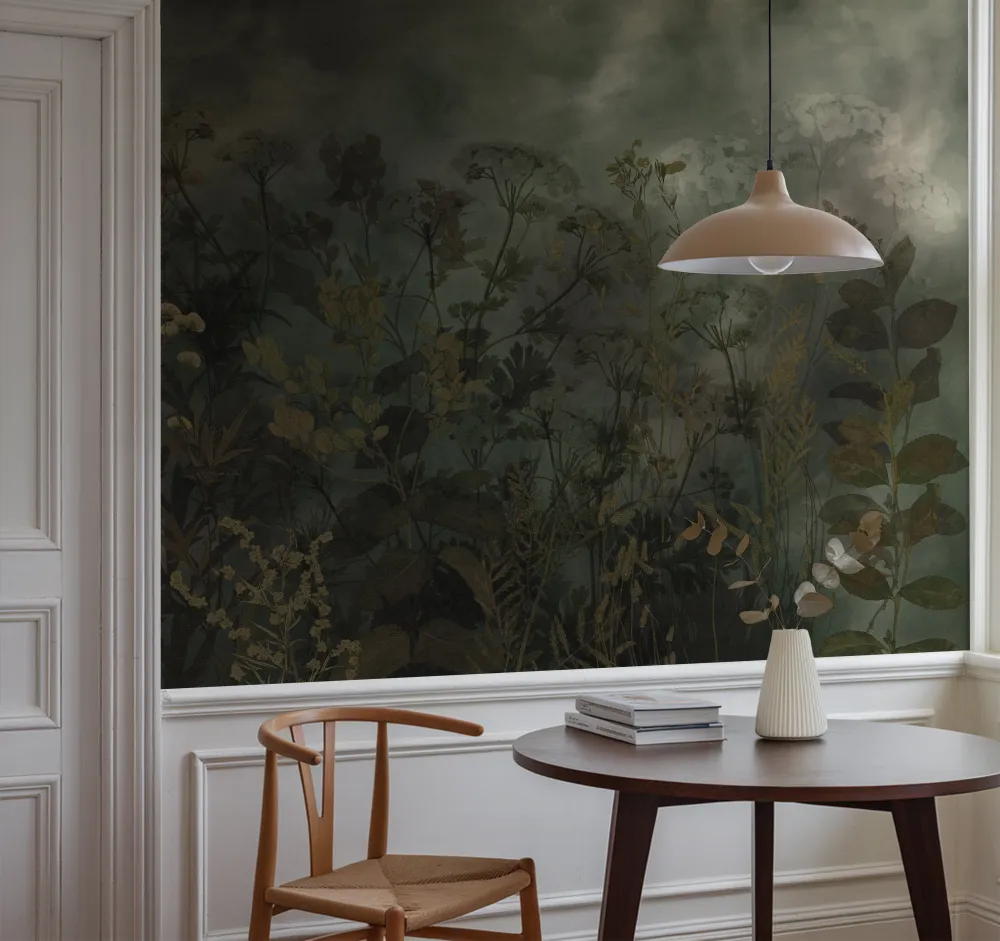 Transforme seu espaço com o Papel de Parede Natureza Sombria com Flores Silvestres, que apresenta uma cena de prado escuro e melancólico em tons ricos de verde floresta. Projetado para lares sofisticados, este papel de parede cria um fundo atmosférico que evoca uma sensação de calma e elegância. Perfeito para adicionar profundidade e um toque do mistério da natureza a qualquer ambiente.