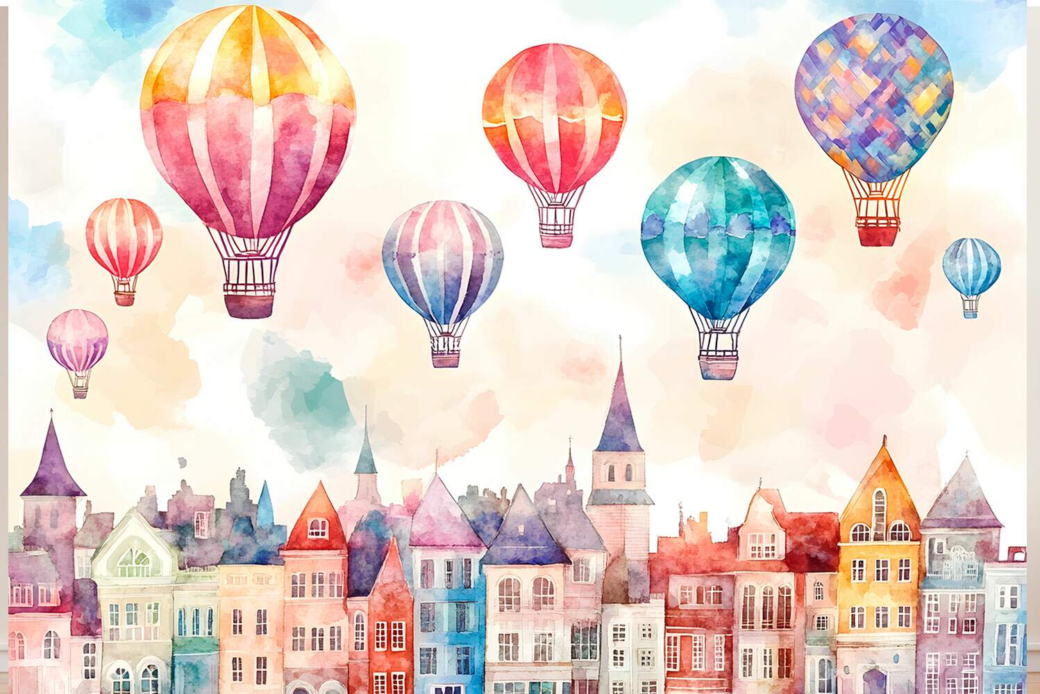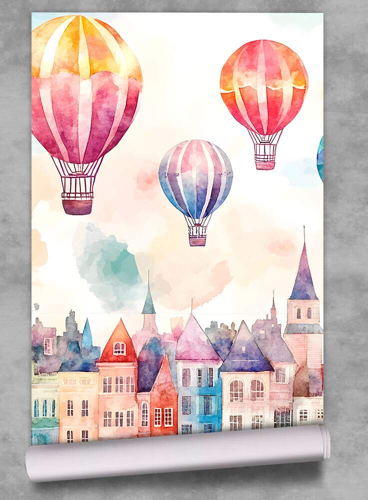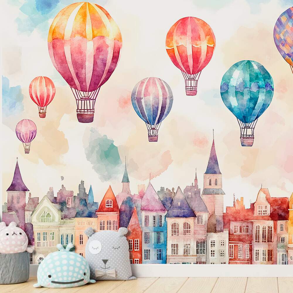 Papel de Parede para Quarto Infantil Aquarela Balões na Cidade MP