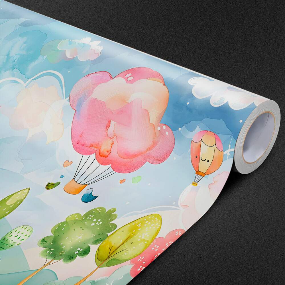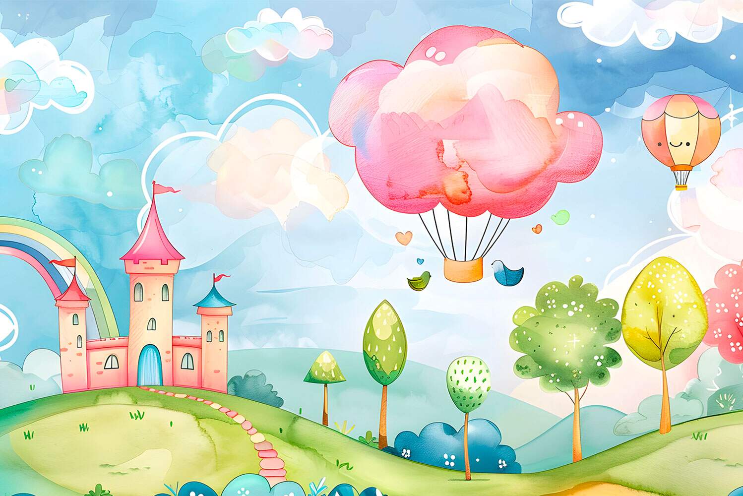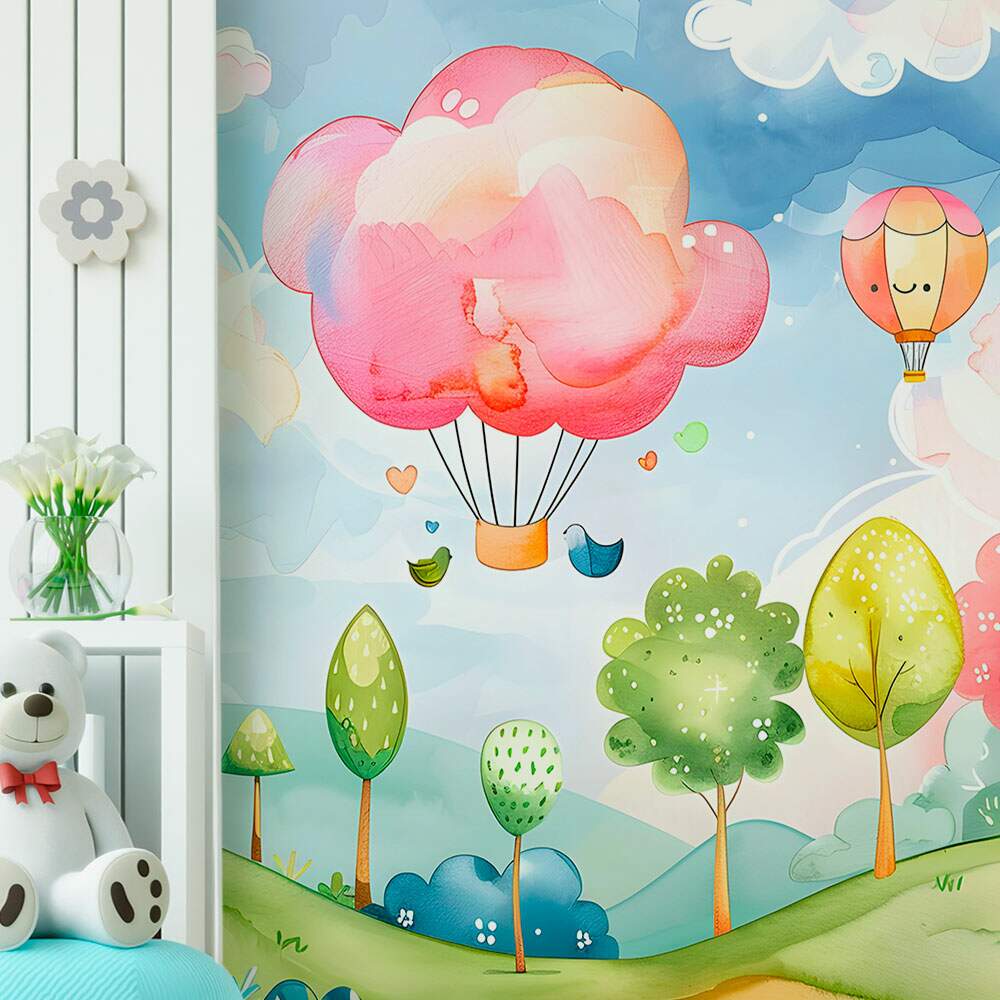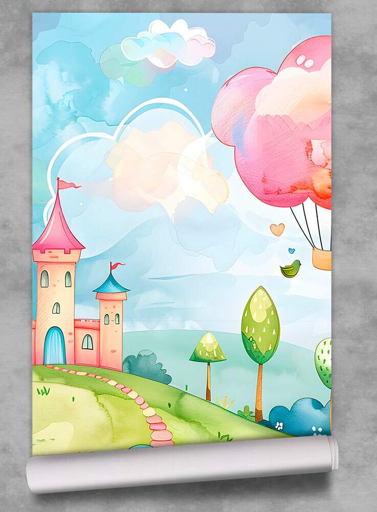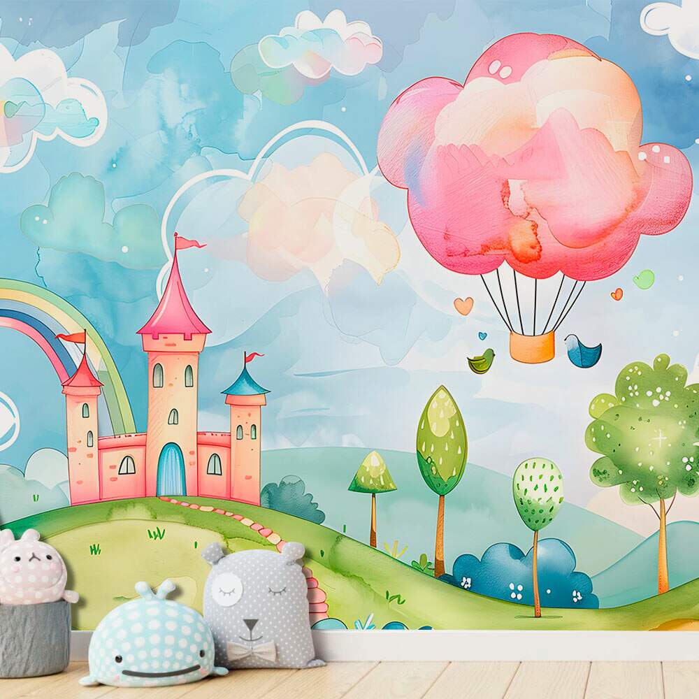Papel de Parede para Quarto Infantil Aquarela Paisagem Castelo e Balão MP