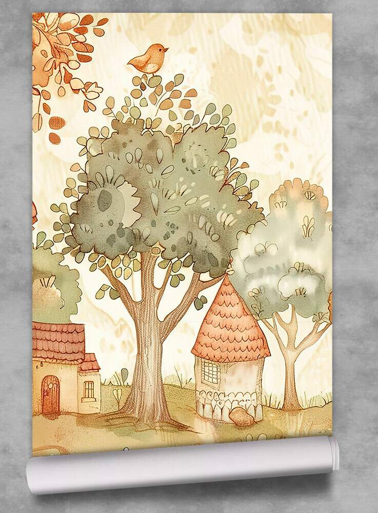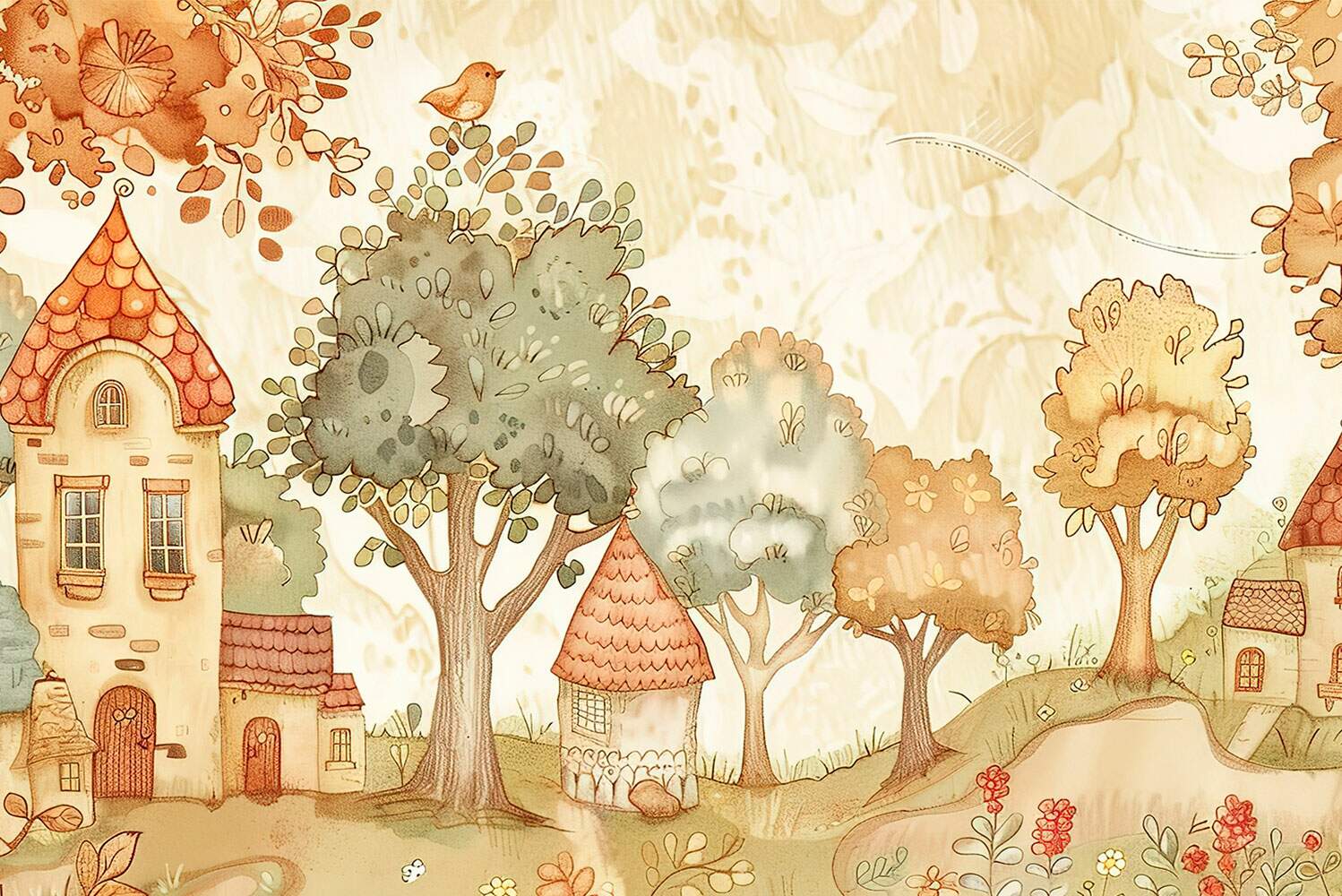 Papel de Parede para Quarto Infantil Aquarela paisagem de Outono MP