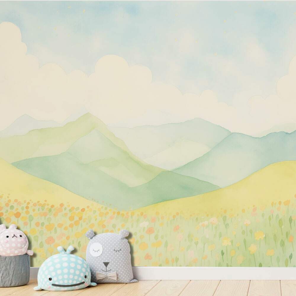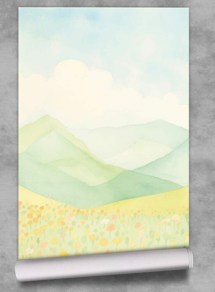Papel de Parede para Quarto Infantil Aquarela Paisagem Planície MP