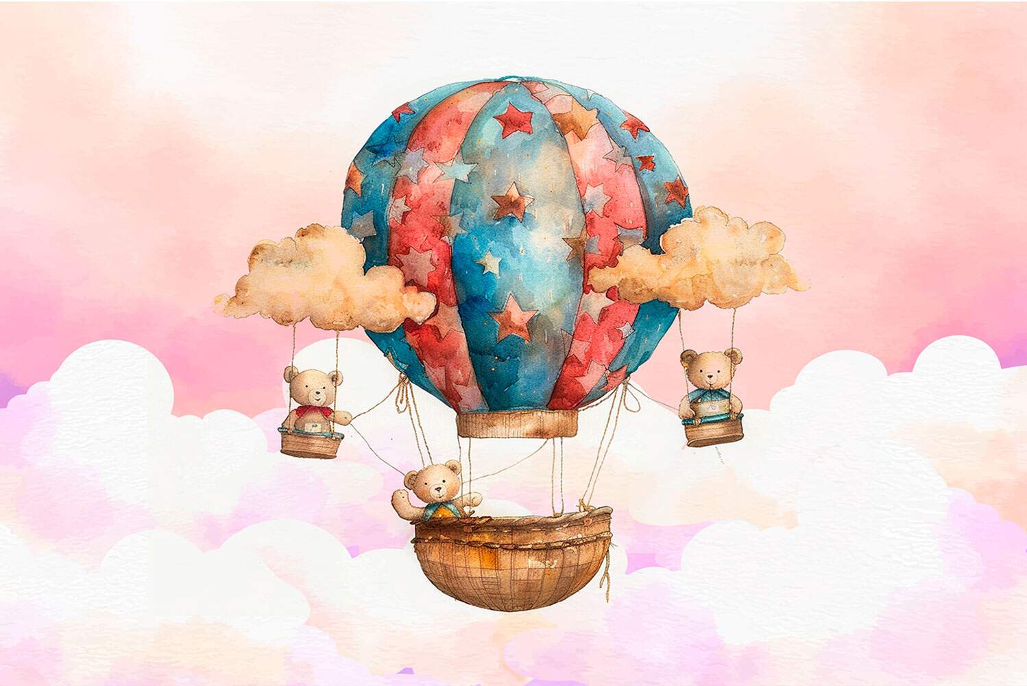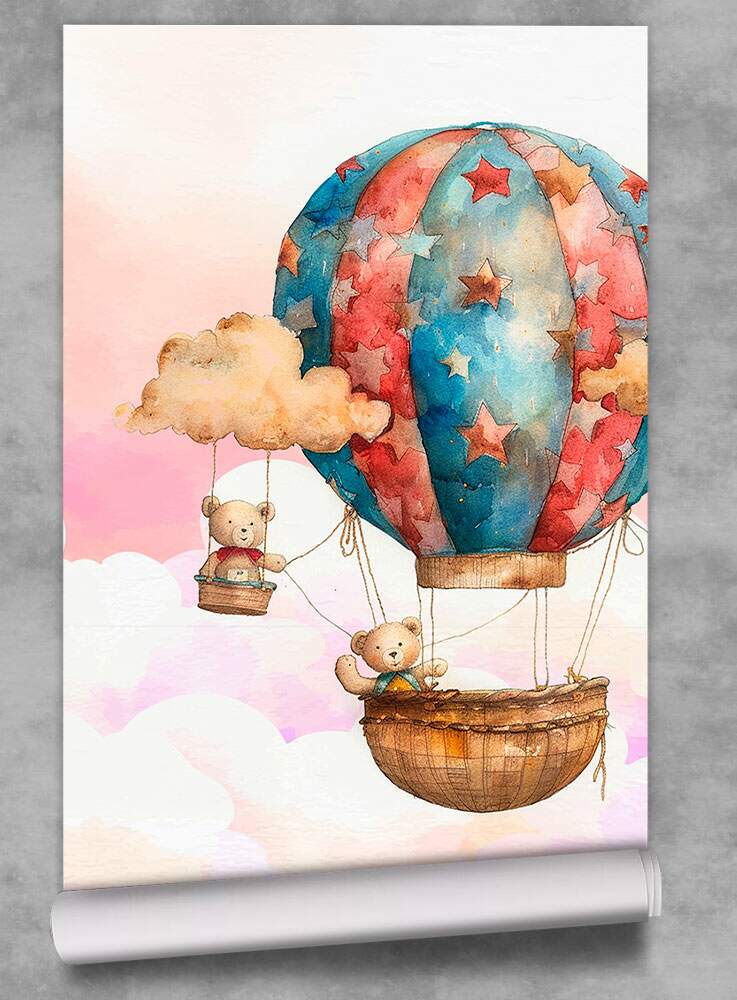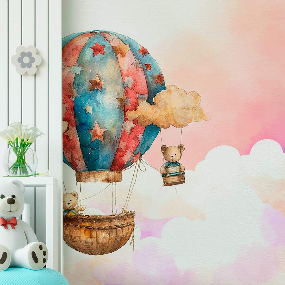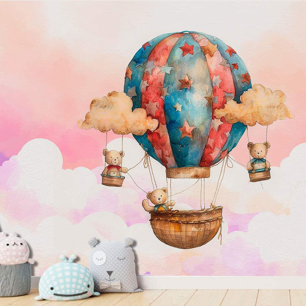 Papel de Parede para Quarto Infantil Aquarela Ursinhos no Balão MP