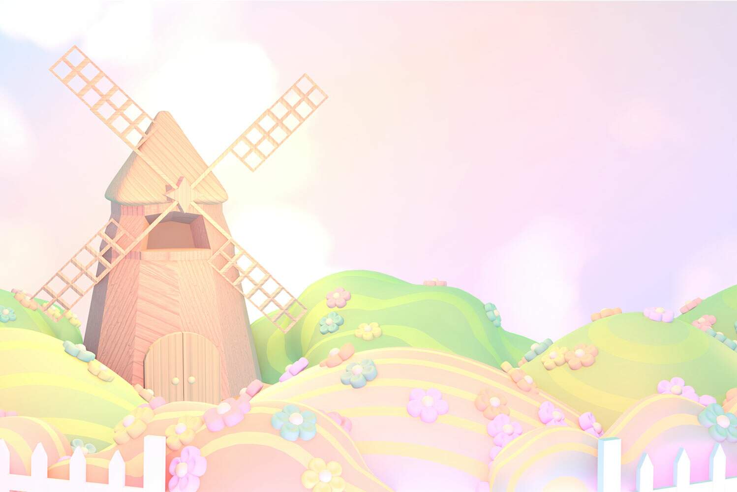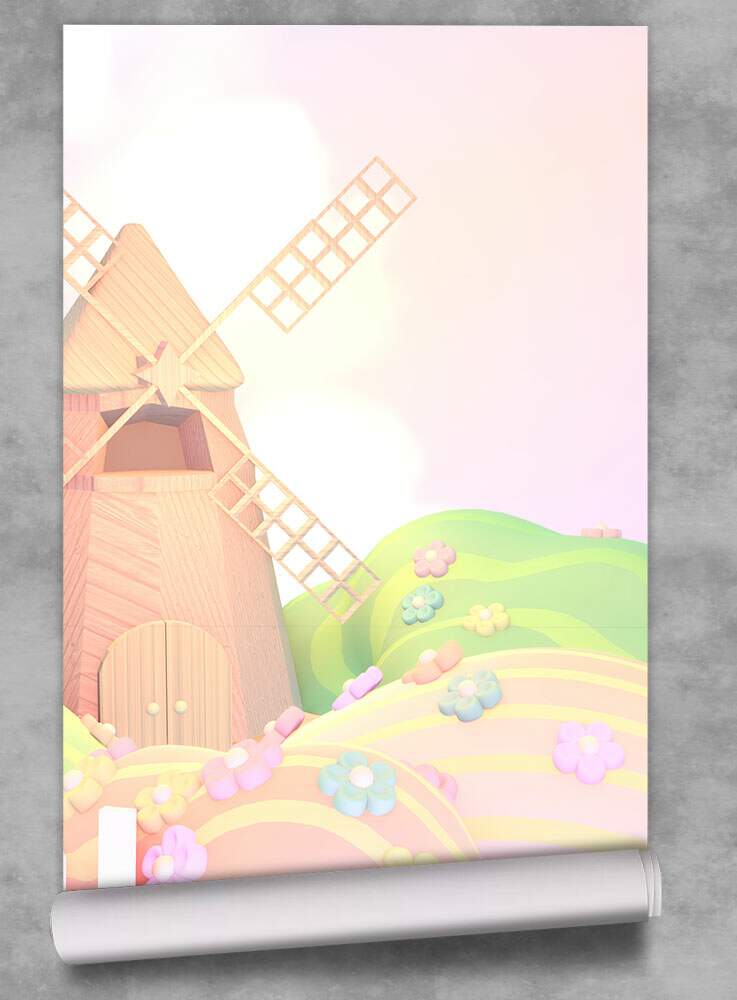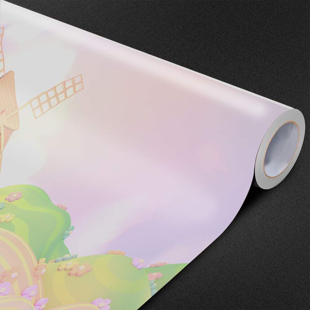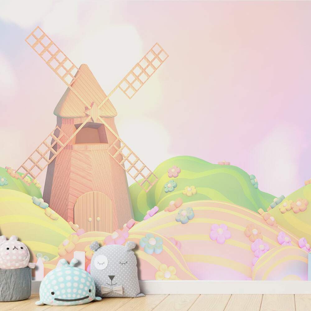 Papel de Parede para Quarto Infantil Moinho De Vento em Campo de Flores MP
