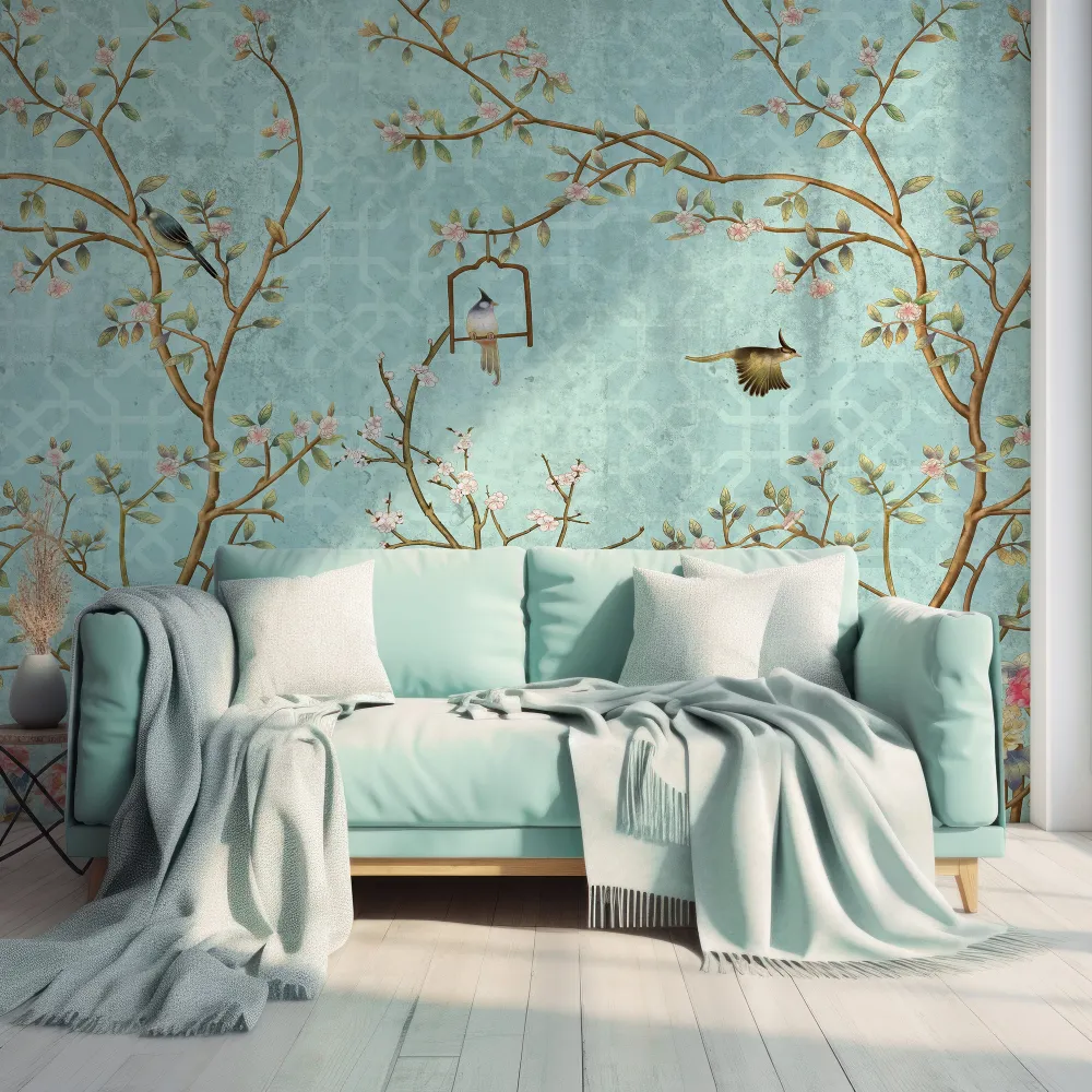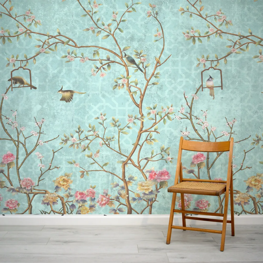 Descubra a elegância do estilo Chinoiserie com este magnífico papel de parede que traz a beleza dos ramos em flor e pássaros em um fundo suave. Com uma paleta de cores relaxante e um padrão geométrico sutil, este mural transforma qualquer ambiente em um espaço sereno e encantador, perfeito para criar uma atmosfera de tranquilidade e harmonia. Ideal para quem deseja adicionar um toque de sofisticação e personalidade à decoração da casa.