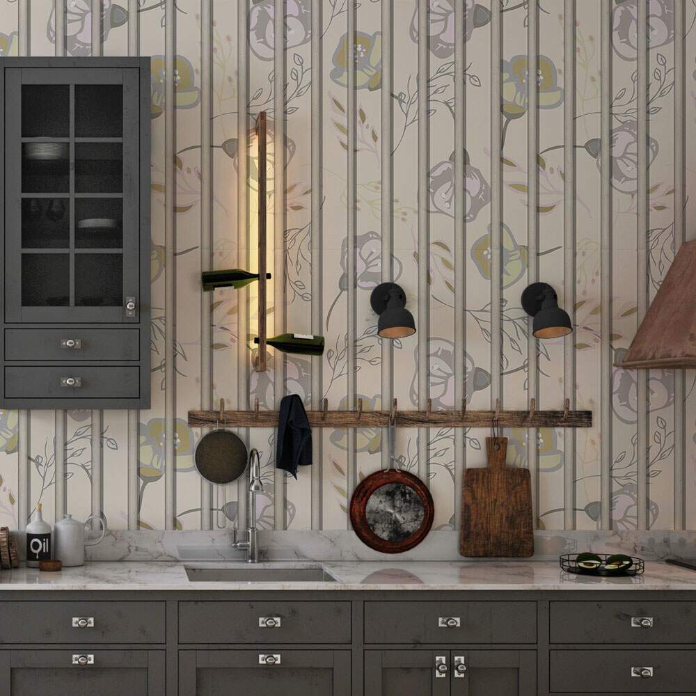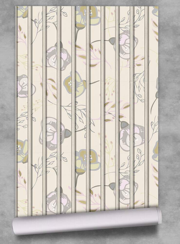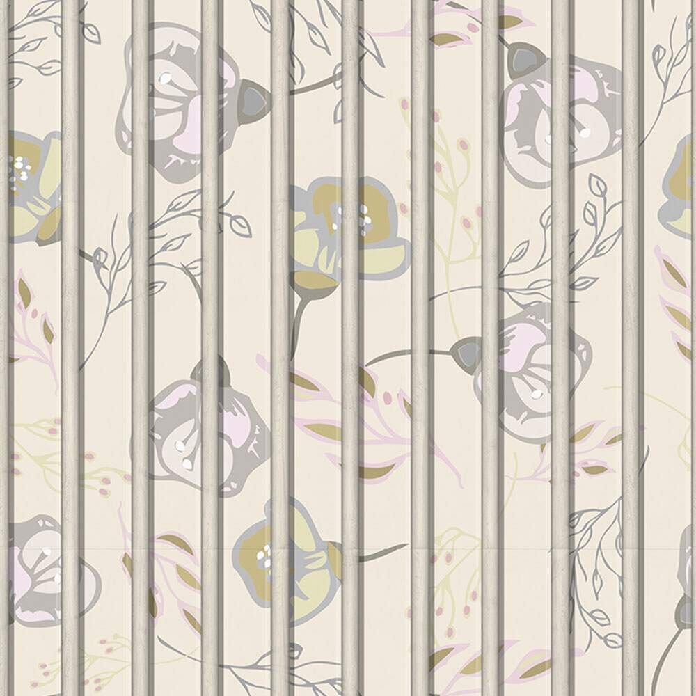 Papel de Parede Ripado Floral Abstrato na Madeira