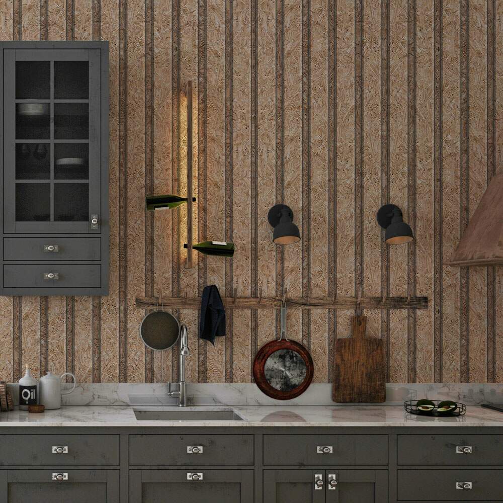Papel de Parede Ripado Madeira Compensada