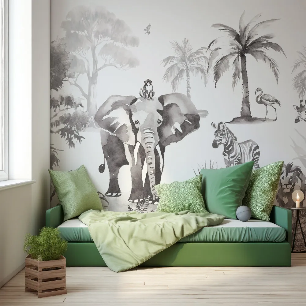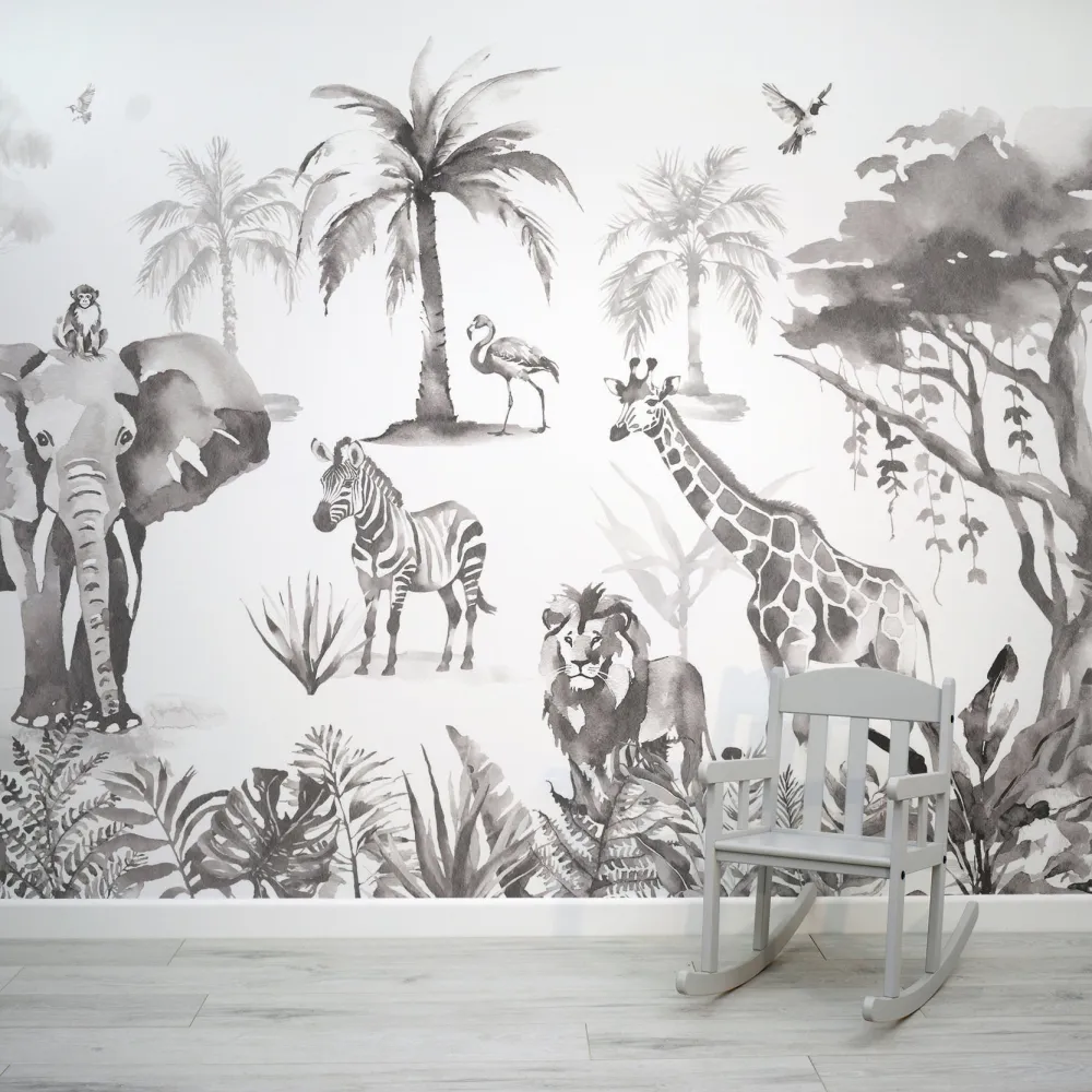 Papel de Parede Safari Monocromático para Crianças MP