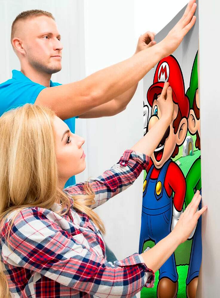 Nossos adesivos murais vêm em rolos de 1 metro, permitindo uma aplicação contínua sem emendas visíveis. Assim, suas paredes se transformam em uma obra de arte impecável.