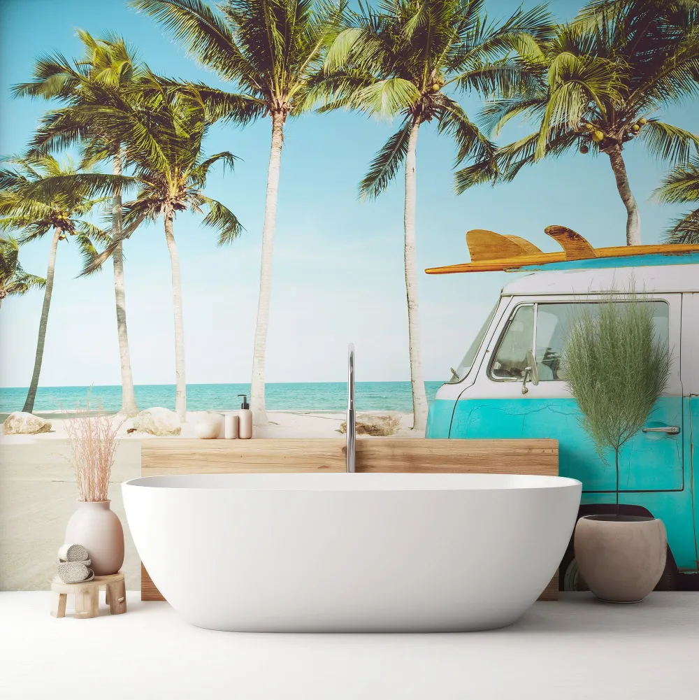 Papel de Parede Surfista Azul com Van de Praia MP