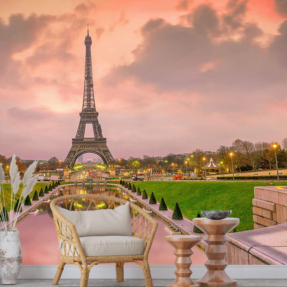 Papel De Parede Torre Eiffel Nascer Do Sol Paris MP