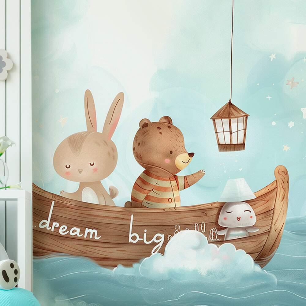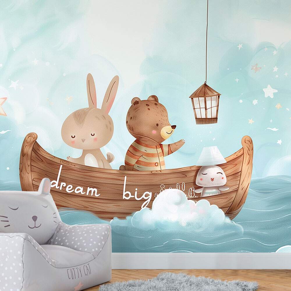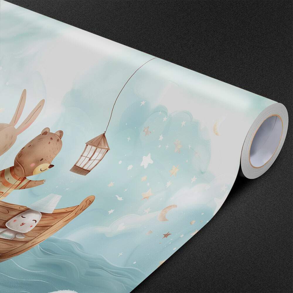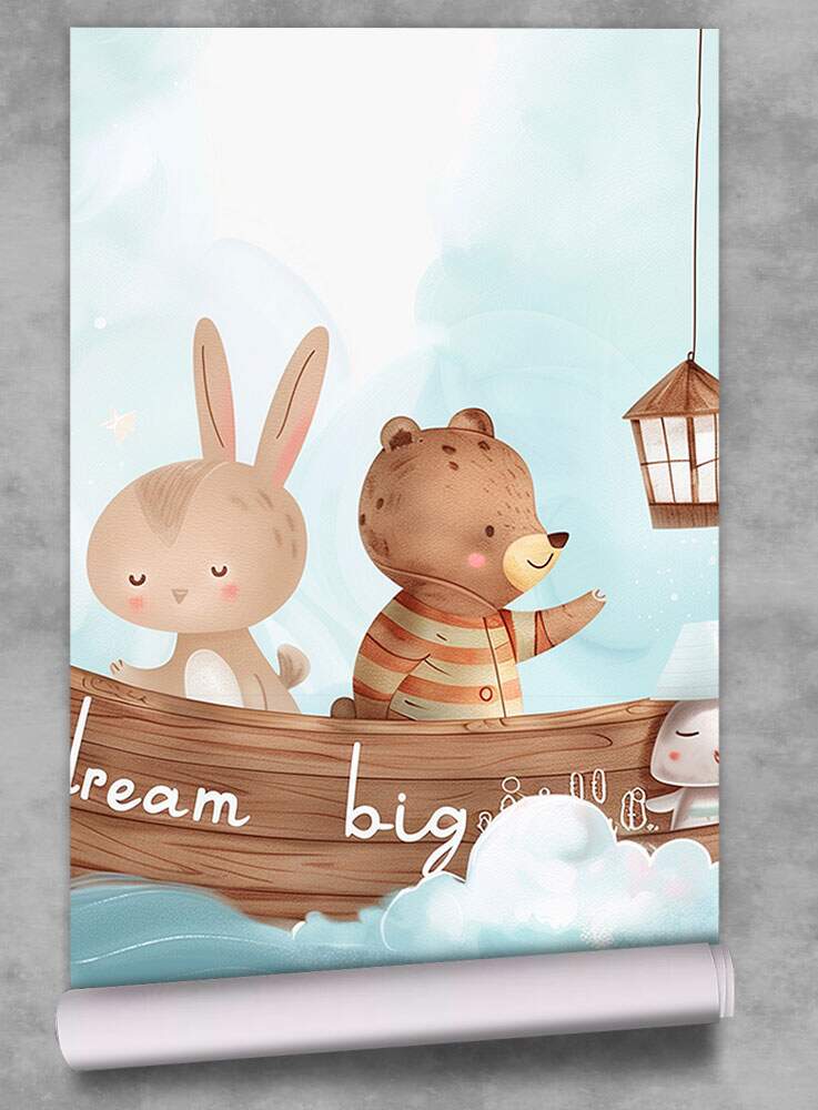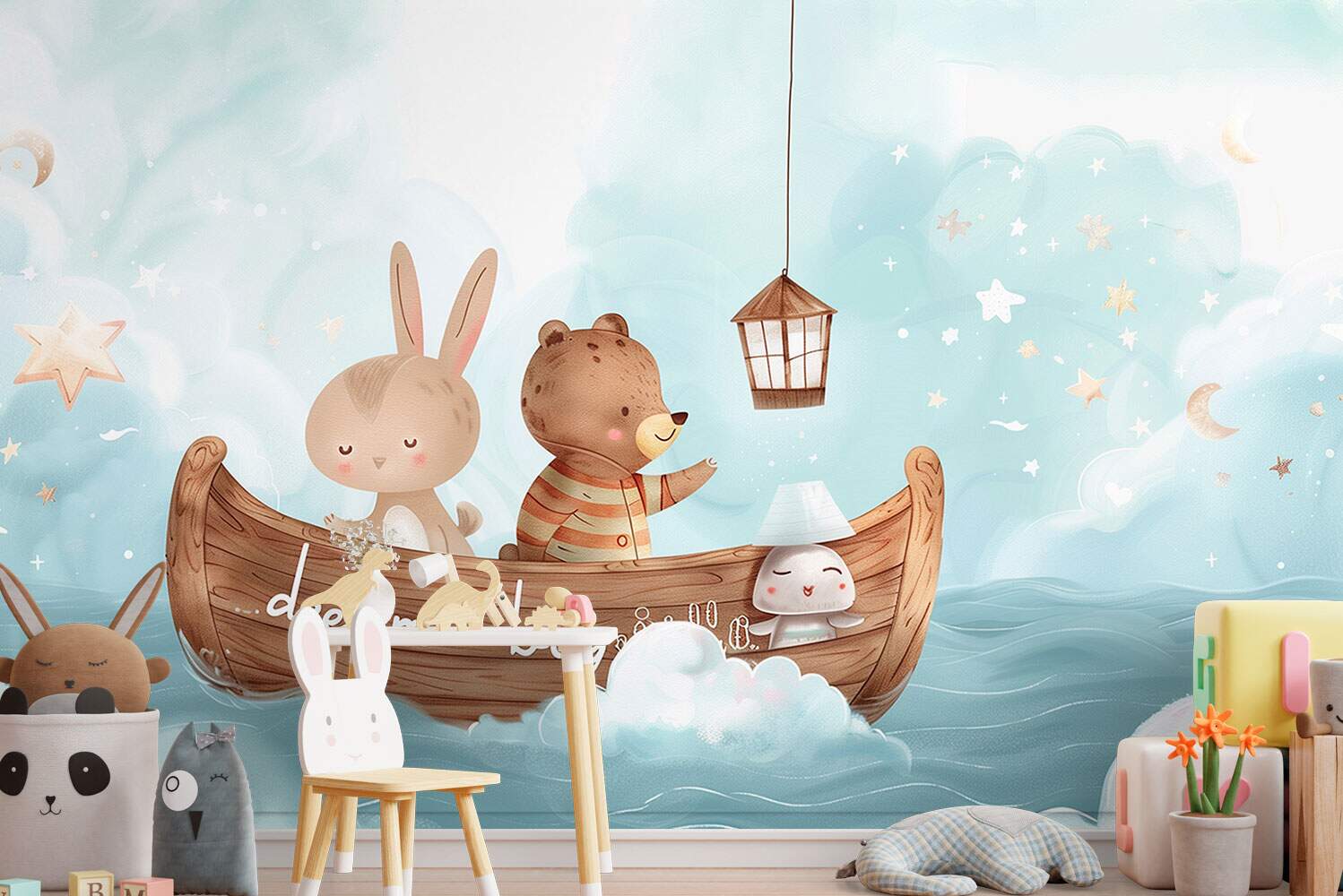 Papel De Parede Ursinho E Coelho No Barquinho MP