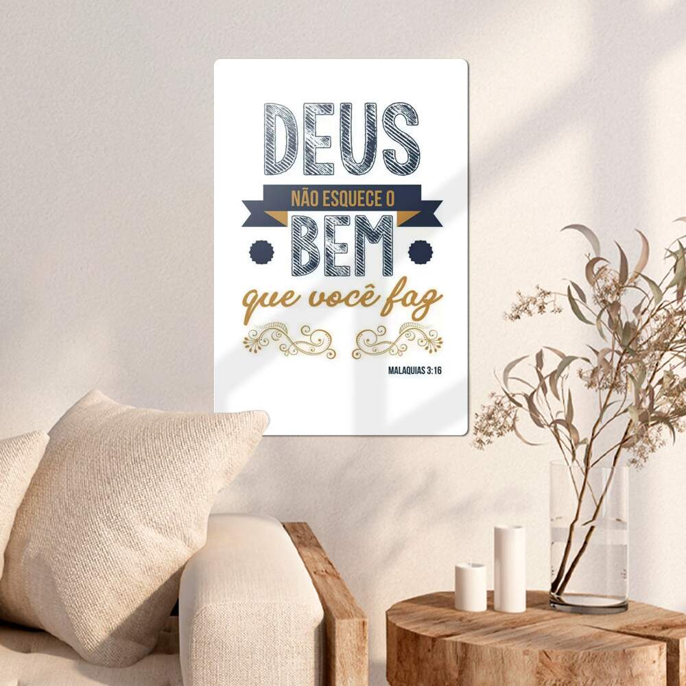 Placa Decorativa Fé e Religião Deus não Esquece o Bem Transforme o seu espaço com a Placa Decorativa Fé e Religião Deus não Esquece o Bem. Transmita paz e positividade com essa peça única e encantadora. Feita com materiais de excelência, essa placa é a escolha ideal para quem busca uma decoração especial e com significado. Surpreenda seus convidados com um toque de espiritualidade e beleza. Aproveite já para adquirir a sua e deixe sua casa ainda mais acolhedora. 0 avaliações | Dê a sua avaliação! Referência: 34150 Selecione o Tamanho 15x20cm 20x30cm 30x45cm Na compra deste produto você irá ganhar R$ 0,65 em cash back R$ 25,93R$ 12,90 ou até 1x sem juros de R$ 12,90 ou em até 2x de R$ 6,98 no cartão Comprar Esse produto encontra-se indisponível. Deixe seu contato que avisaremos quando chegar. Seu nome: Seu e-mail: Desejo receber e-mails com lançamentos e promoções. Avise-me quando disponível Boleto Bancário Parcelas 1x de R$ 13,55 sem juros 2x de R$ 6,98 Opções de pagamento Detalhes Entrega imediata Indicar este produto Deixar comentário Fita Dupla Face Decore Sem Furar Paredes Transforme seu ambiente sem esforço. As placas incluem fita dupla face 3M para uma fixação segura, sem a necessidade de furar a parede. Impressão de Alta Qualidade Cores Vivas, Detalhes Nítidos Cores vibrantes e nítidas que transformam seus espaços, destacando cada detalhe com perfeição e elegância. Acabamento em Corte a Laser Precisão em Cada Detalhe Nossas placas são elaboradas com corte a laser, proporcionando precisão e bordas arredondadas para garantir elegância e proteção. Diversos Formatos e Opções Versatilidade que Encanta Explore nossas coleções disponíveis em uma ampla gama de formatos e opções. Escolha o estilo que reflete a sua personalidade e se encante! Frete Grátis para Todo o Brasil Confira regras! Oferecemos frete grátis para todo o Brasil. Adquira suas placas decorativas sem custos adicionais. Ganhe 4 Mini Placas Na Compra de 10 ou Mais Placas Embeleze seu espaço com o charme das mini cidades! Compre 10 placas e ganhe 4 Mini Placas exclusivas, perfeitas para adicionar um toque urbano e distinto à sua decoração. Pequenos detalhes, grandes diferenças! Veja como aplicar Transforme Seus Espaços em Minutos Explore a facilidade de instalar nossas placas decorativas e encante-se com o impacto visual imediato. Em poucos passos, revitalize seu ambiente com estilo e simplicidade. Inspire-se em nossa galeria e veja como é simples transformar seu espaço! Perguntas Frequentes Como fixar a Placa Decorativa? As Placas já incluem fita dupla face 3M para aplicação em superfícies lisas, garantindo fixação resistente sem necessidade de furos ou pregos. Qualidade da impressão nas placas? Impressas em alta definição em adesivo vinil sobre MDF. Ideais para visualização a 1m ou mais, podendo apresentar pixelação mínima ao olhar de perto, o que não compromete a estética após a aplicação. Acabamento do corte a laser? Utilizamos corte a laser eletrônico para um acabamento elegante e rústico. O processo pode escurecer levemente as bordas, detalhe que não interfere na beleza do produto. Preciso furar a parede? Não. Cada Placa Decorativa vem com fita dupla face 3M de alta aderência para fixação segura e prática sem danificar suas paredes. Posso personalizar o tema da Placa Decorativa? Sim. Para temas personalizados, entre em contato através do e-mail vendas@franadesivos.com.br e nossos designers criarão um design exclusivo para você. Detalhes e acabamento das placas? Placas em MDF com adesivo vinílico fosco de 0,10mm. O corte a laser pode criar marcas sutis em tons mais claros, conferindo um charme rústico ao produto.