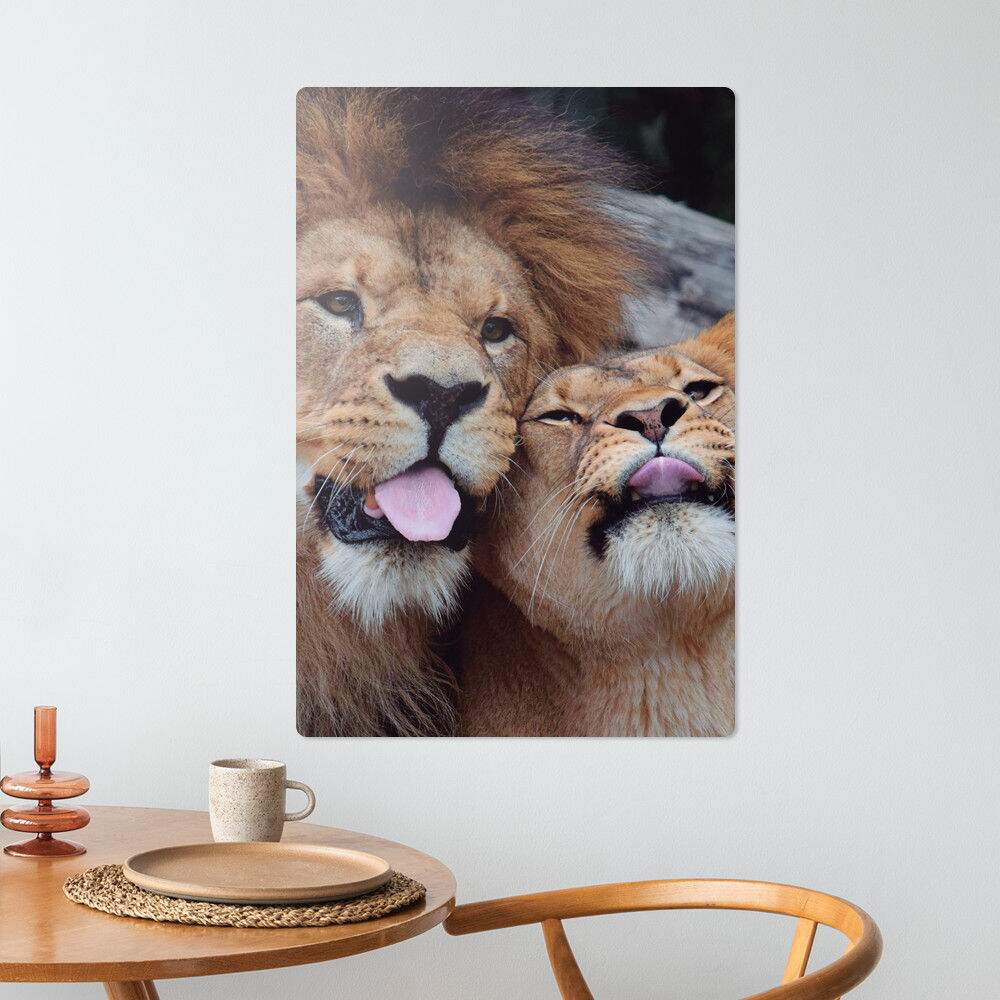 Placa Decorativa Leão e Leoa Mostrando Língua