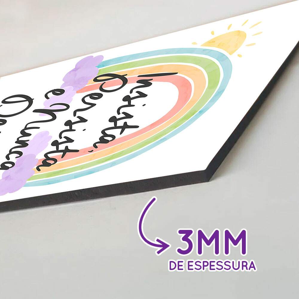 Placas em MDF com adesivo vinílico fosco de 0,10mm. O corte a laser pode criar marcas sutis em tons mais claros, conferindo um charme rústico ao produto.