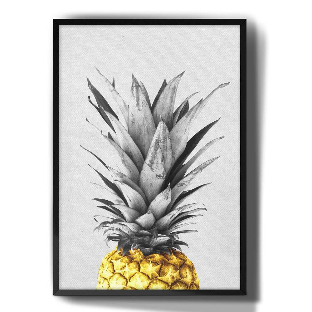 Quadro Decorativo Abacaxi Preto Branco e Dourado