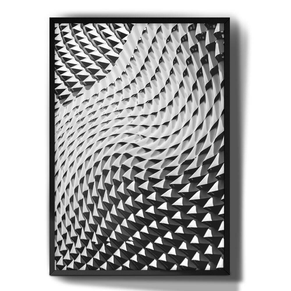 Quadro Decorativo Abstrato Onda de Triângulos Preto e Branco 3D