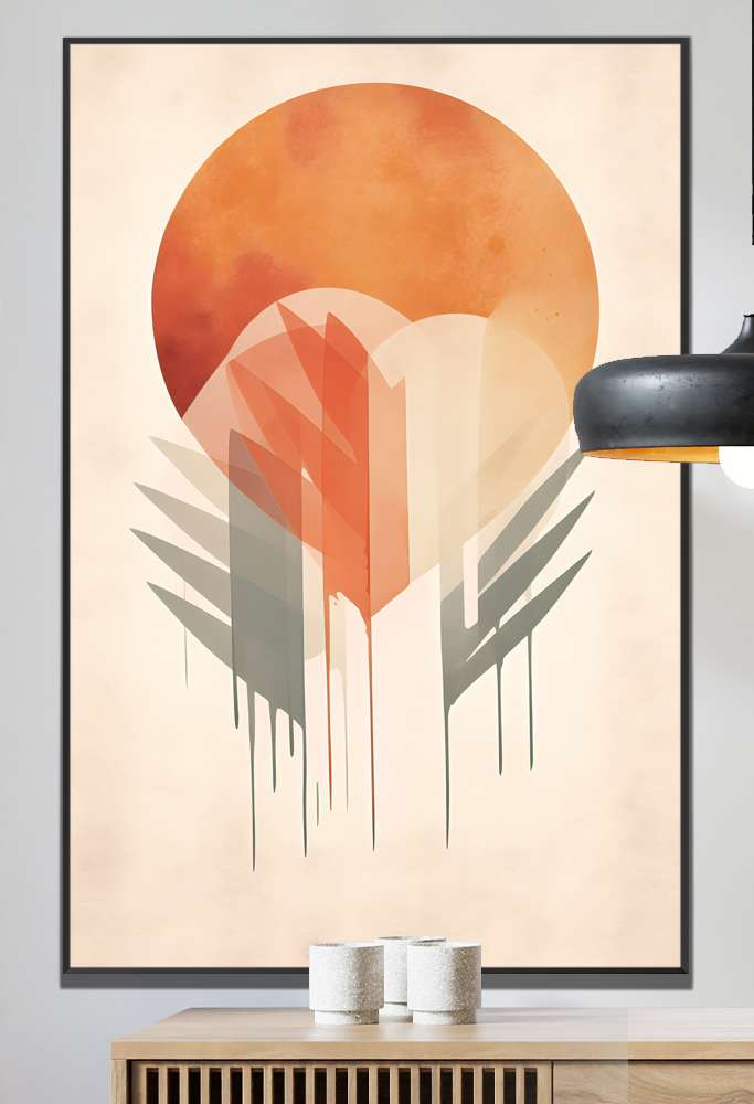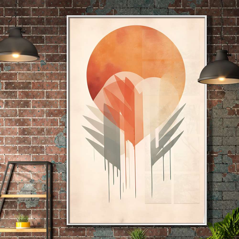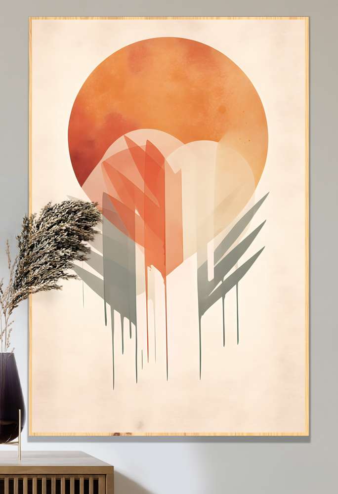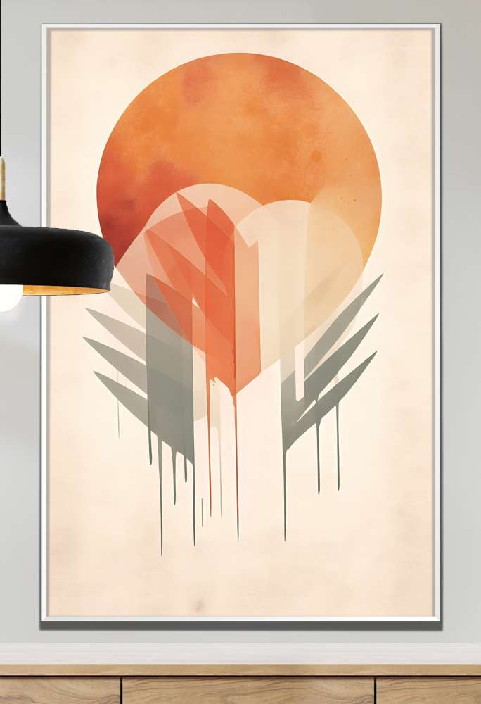 Este quadro decorativo Arte Abstrata Figuras Geométricas com Detalhes é uma peça única que explora a dualidade entre natureza e geometria. Com um grande círculo laranja que lembra o sol, sobreposto por formas geométricas em tons suaves de cinza e laranja, esta obra de arte brinca com transparências e linhas verticais. A composição evoca uma sensação de profundidade e harmonia visual, sendo perfeita para trazer sofisticação e modernidade ao ambiente. Aproveite para adicionar um toque contemporâneo e elegante à sua decoração!
