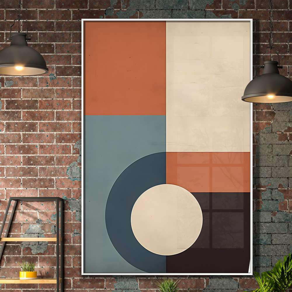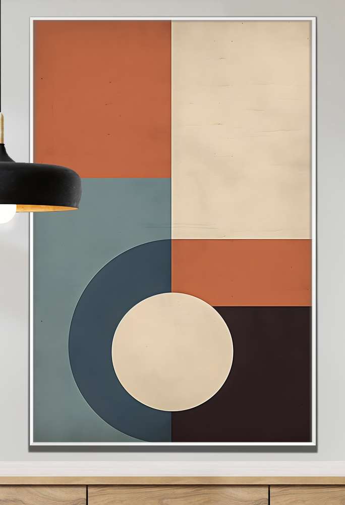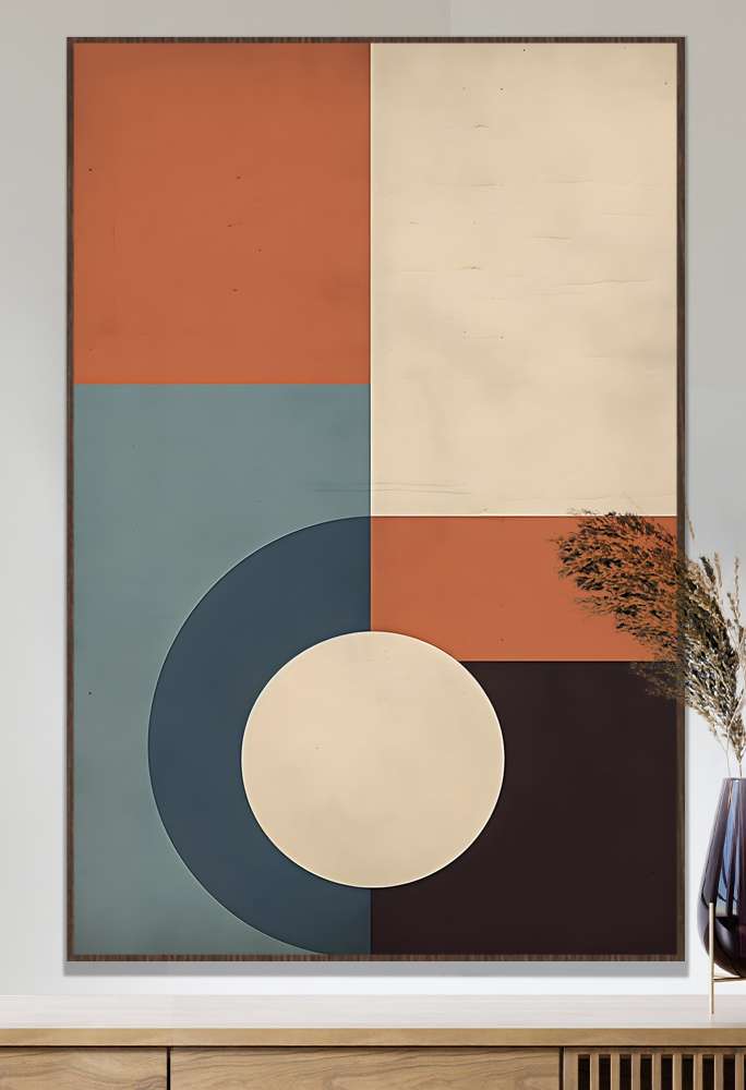 Transforme a decoração de seu ambiente com este Quadro Decorativo de Arte Abstrata. Com figuras geométricas em tons de azul e laranja, essa peça moderna e elegante combina blocos de cor, formas circulares e retangulares em perfeita harmonia. Seu espaço ganhará um toque contemporâneo e sofisticado, transmitindo dinamismo e estilo. Aproveite para adicionar personalidade e criatividade à sua decoração com essa obra única.