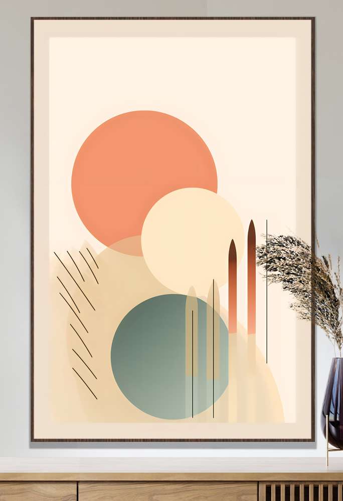 Renove a decoração da sua casa com o Quadro Decorativo Arte Geométrica Abstrata. A arte geométrica abstrata utiliza formas fundamentais, como círculos e linhas, para criar composições visuais intrigantes e modernas. Com cores suaves e harmônicas, como laranja, bege e verde, este quadro transmite equilíbrio e sofisticação, tornando-o uma escolha elegante para decorar qualquer espaço contemporâneo. Adicione um toque de arte e estilo à sua casa com este quadro exclusivo.