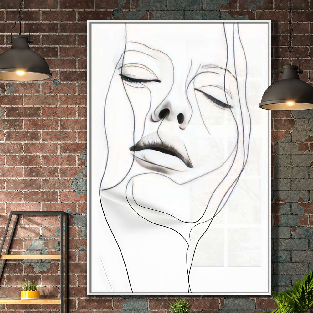 Quadro Decorativo Arte Minimalista Rosto de Mulher Fine Line