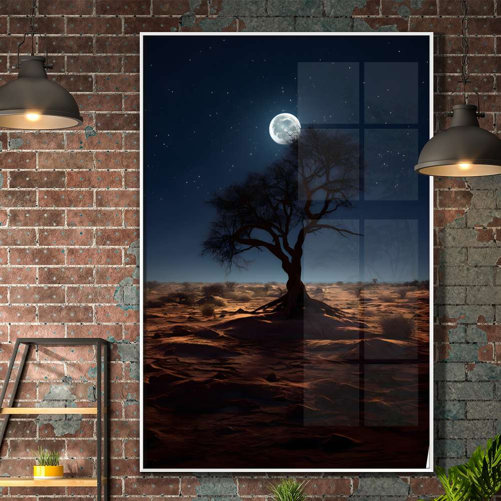 Quadro Decorativo Árvore e Fundo de Lua Cheia