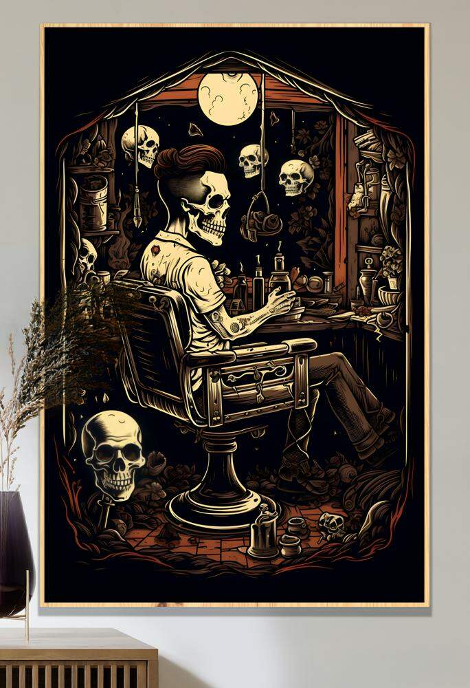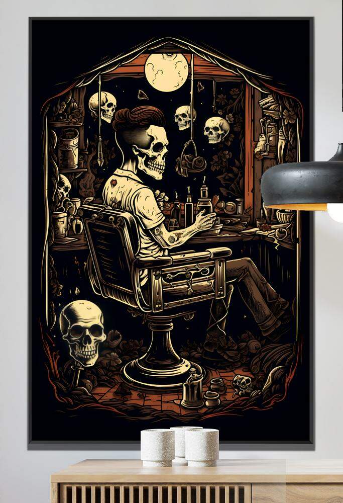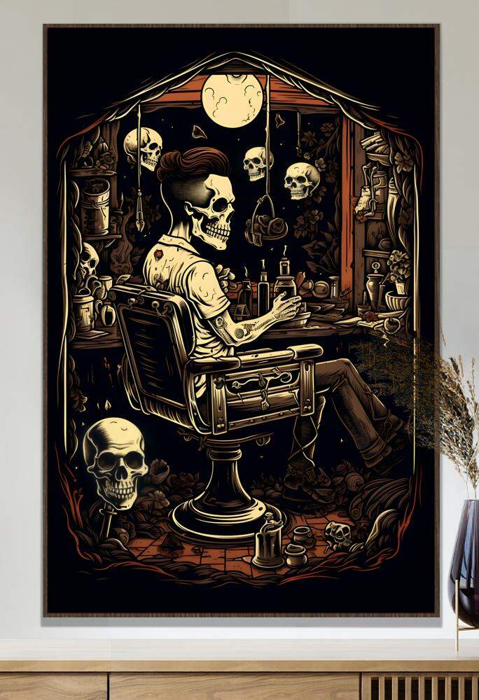 Quadro Decorativo Barbearia Caveiras Estilo Old School