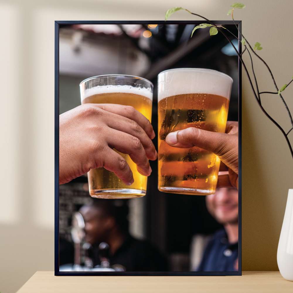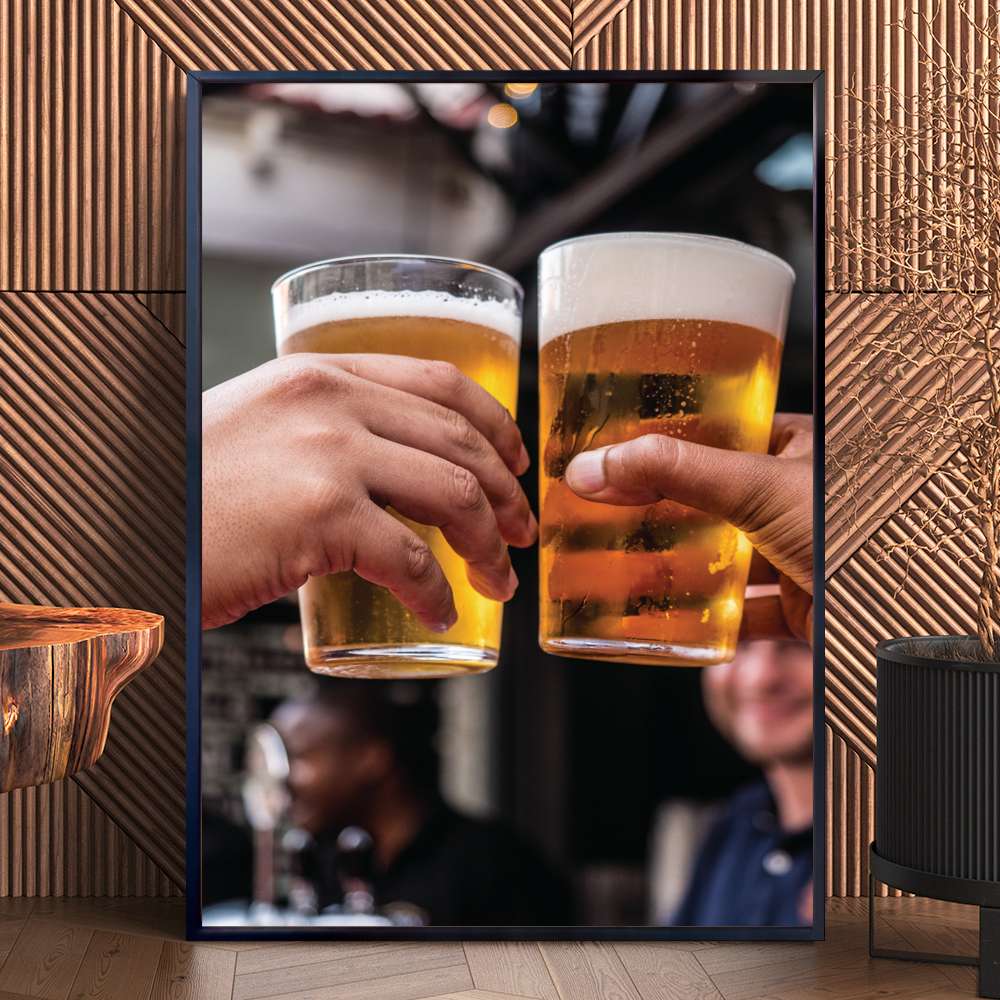 Celebre os momentos especiais com o Quadro Decorativo Brinde Com Copos De Cerveja. Esta peça criativa e descontraída é perfeita para decorar sua área de lazer, cozinha ou até mesmo seu próprio negócio. A tradição de brindar com copos de cerveja, simbolizando união e alegria, é capturada nessa imagem, transmitindo uma sensação de camaradagem e felicidade. Adicione um toque de festividade e acolhimento ao seu ambiente com este quadro único.