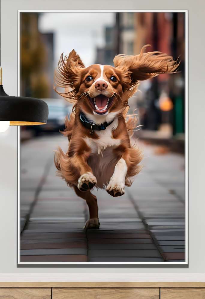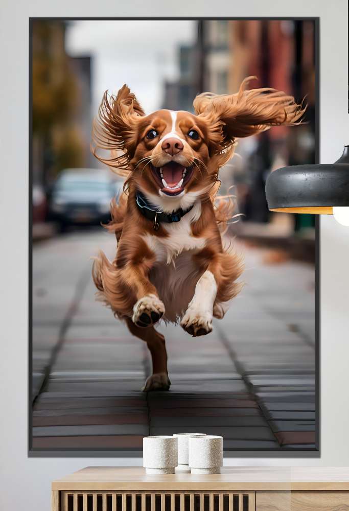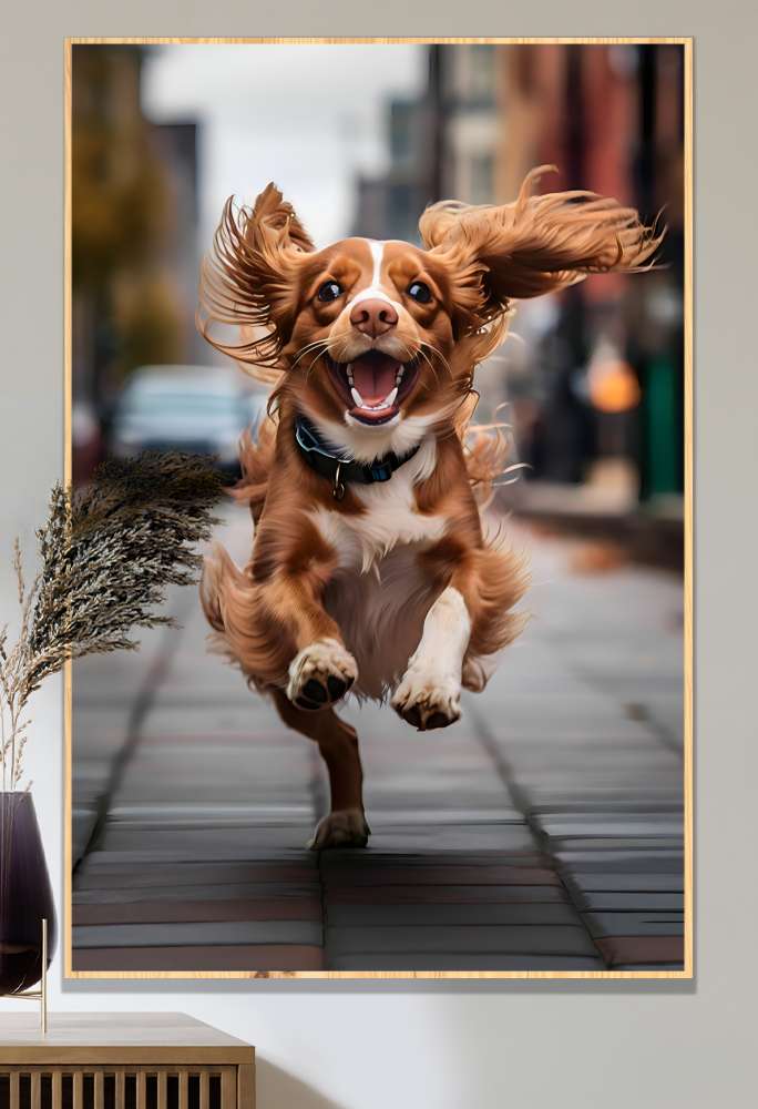 Encante-se com a energia contagiante e a alegria dos cachorros com este Quadro Decorativo Cachorro Correndo. Esta obra de arte captura a essência da felicidade canina, em um momento perfeito de um cachorro em plena corrida, com as orelhas ao vento e uma expressão de pura diversão. Ideal para trazer vida, movimento e alegria para o seu ambiente, este quadro é perfeito para quem ama cães e deseja decorar sua casa com personalidade e estilo. Adicione uma dose extra de animação ao seu lar com este charmoso quadro decorativo.