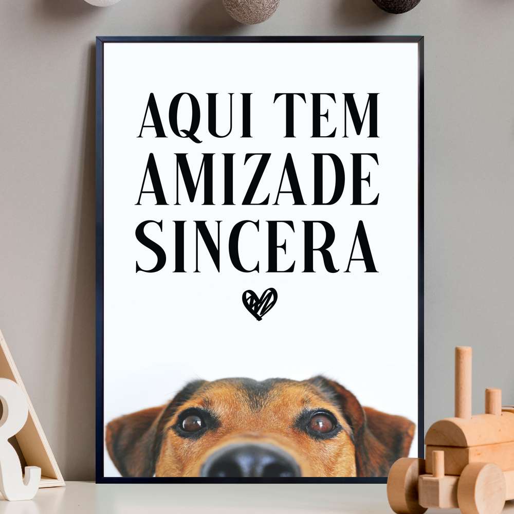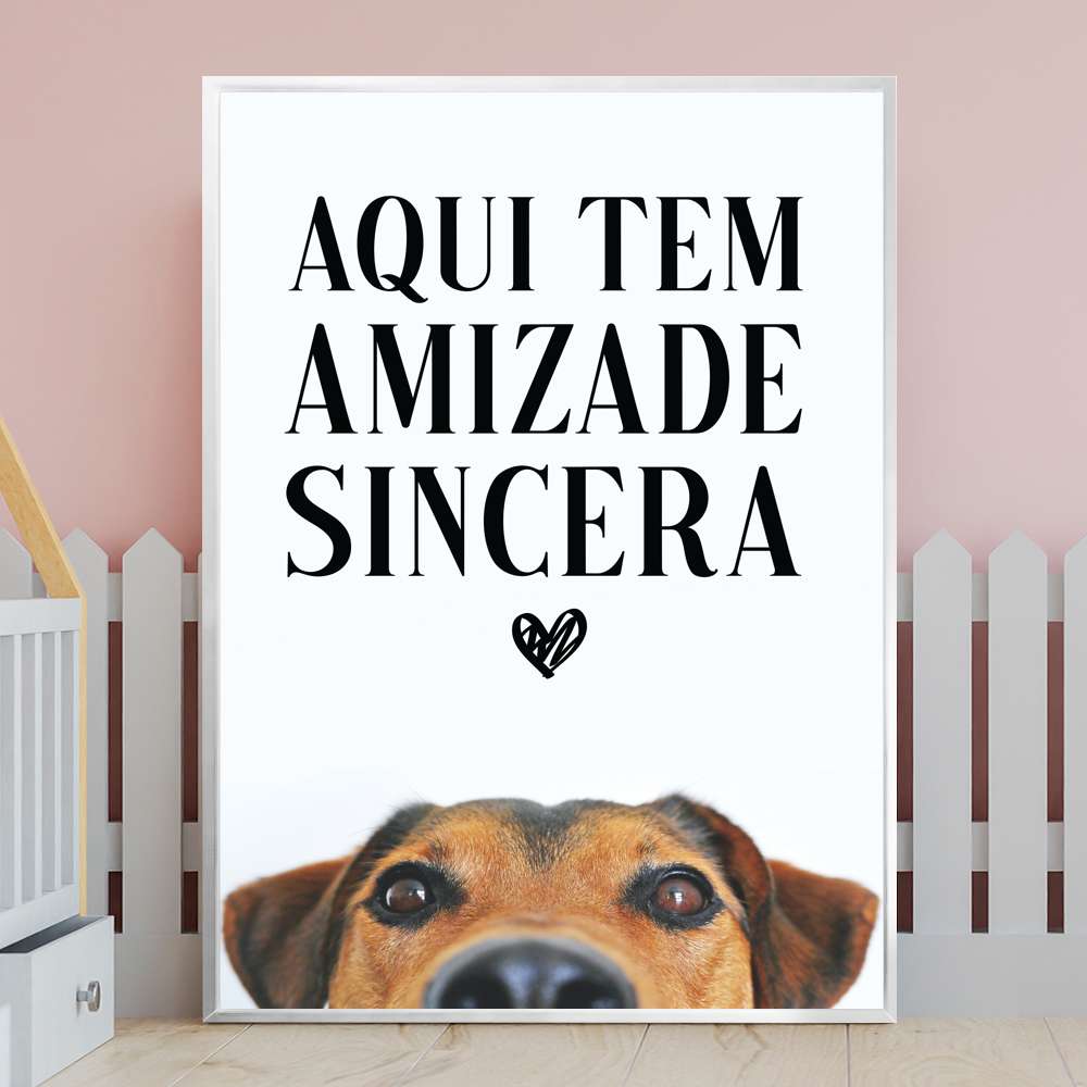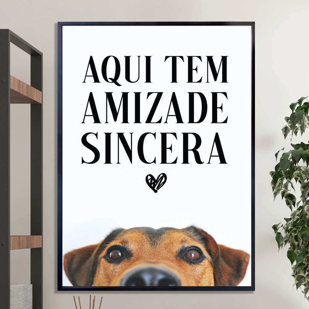 Quadro Decorativo Cachorro e Frase Aqui Tem Amizade Sincera