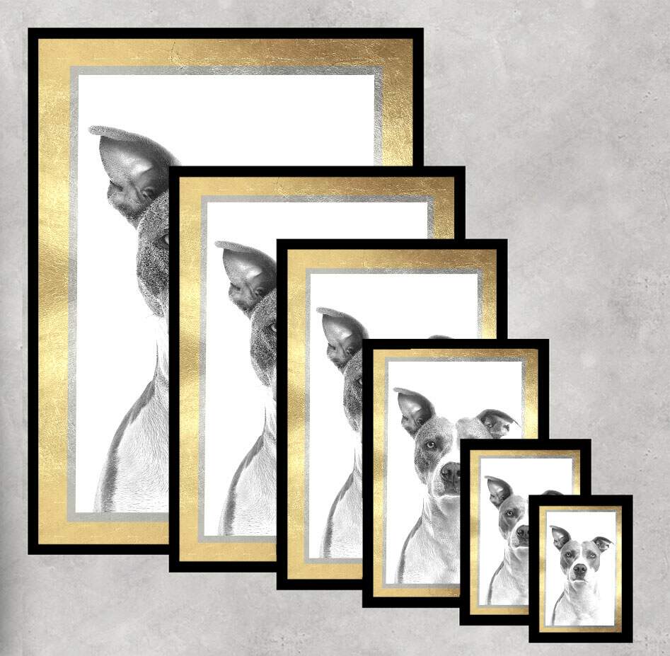 O nosso Quadro Decorativo Cachorro Preto e Branco é uma excelente opção para você decorar o seu pet shop e deixar o seu estabelecimento estiloso e tematico. Quadros decorativos, quadros decorativos animais, quadros decorativos cachorro preto e branco, quadros decorativos borda dourada fundo branco.