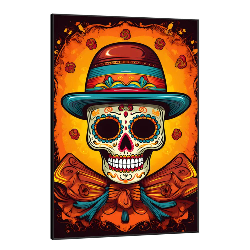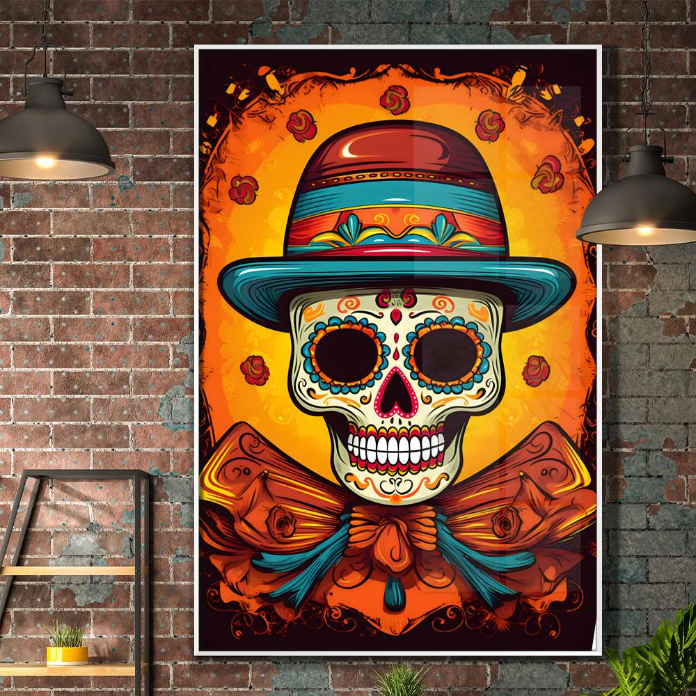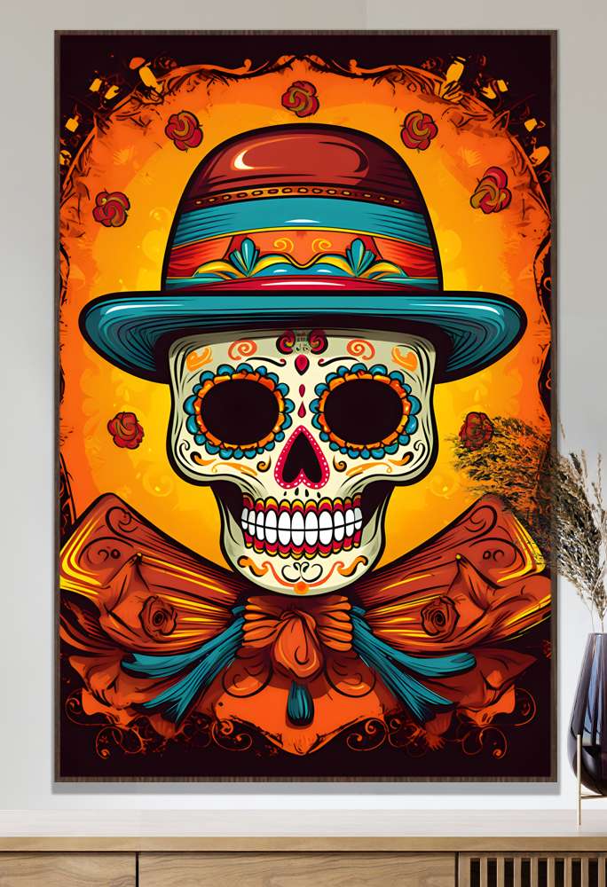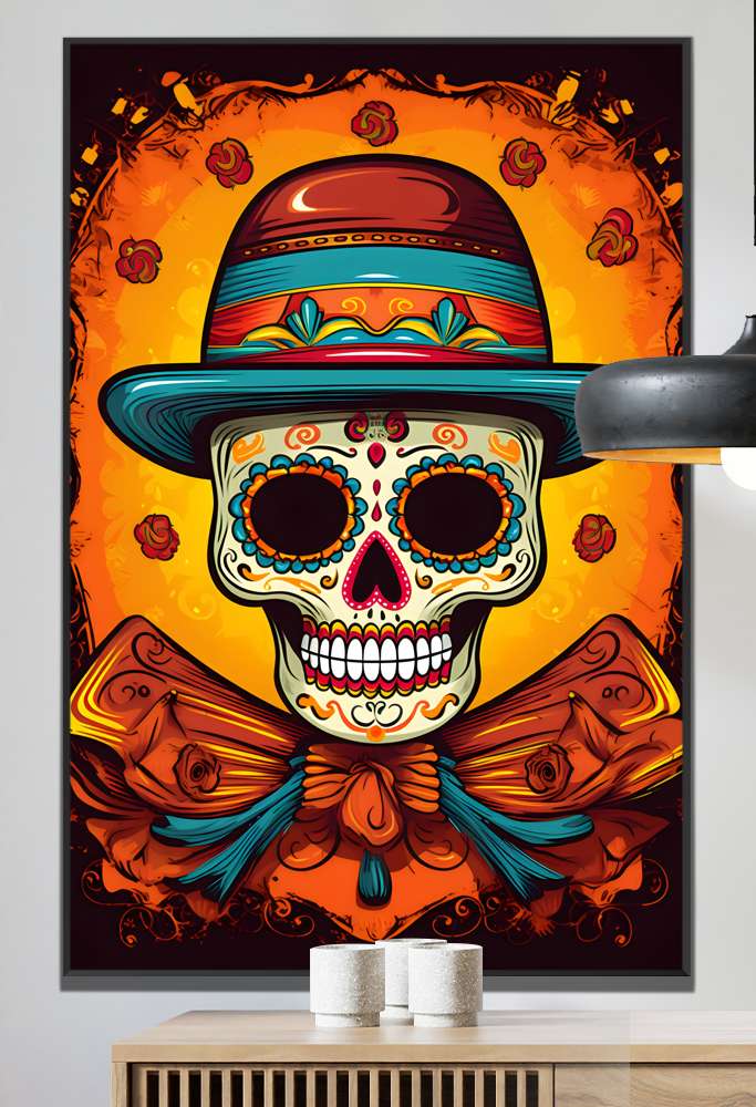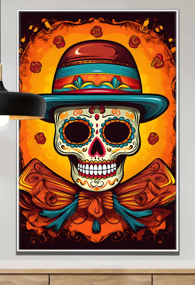 Quadro Decorativo Caveira Mexicana Fundo Laranja