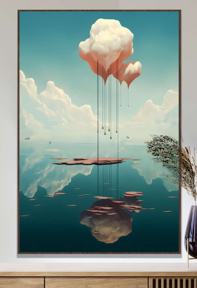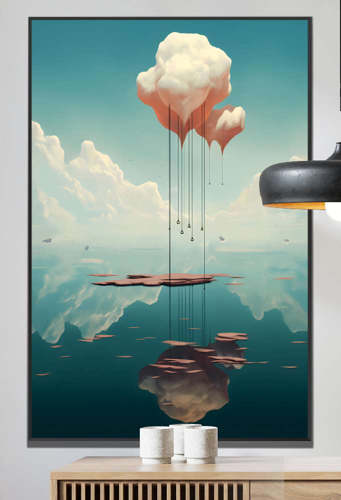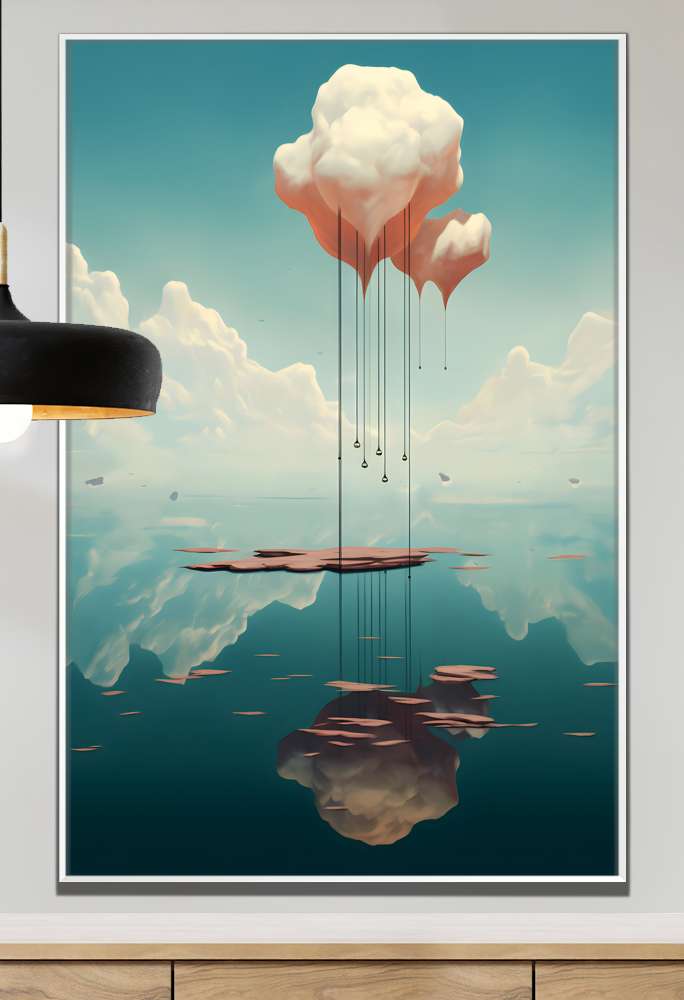Transmita beleza e serenidade para o seu espaço com este Quadro Decorativo Cena Minimalista. As nuvens flutuantes e suas linhas refletindo suavemente em um rio calmo criam uma atmosfera de simetria e paz, evocando a tranquilidade da natureza. Com um toque de surrealismo, essa peça é ideal para ambientes que buscam harmonia e contemplação. Adicione essa obra de arte à sua decoração e mergulhe em uma sensação de calma e equilíbrio todos os dias.