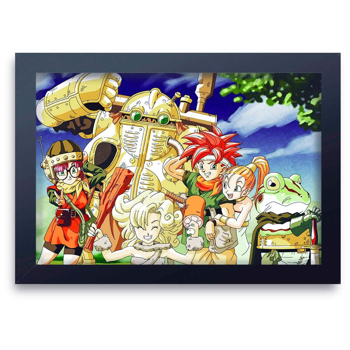 Este quadro decorativo é perfeito para os fãs de Chrono Trigger que desejam adicionar um toque de nostalgia e aventura à decoração de sua casa. Com uma ilustração única e vibrante, esse item vai te transportar diretamente para o mundo mágico desse clássico dos videogames. Ideal para quem busca um toque de personalidade e originalidade no ambiente. Adquira já o seu e deixe sua parede ainda mais especial!