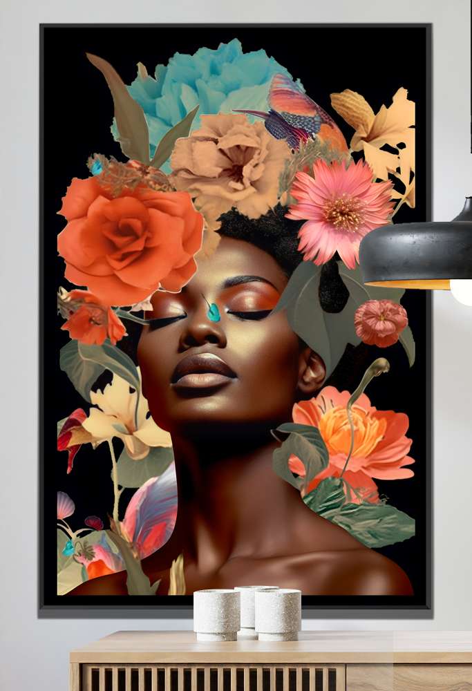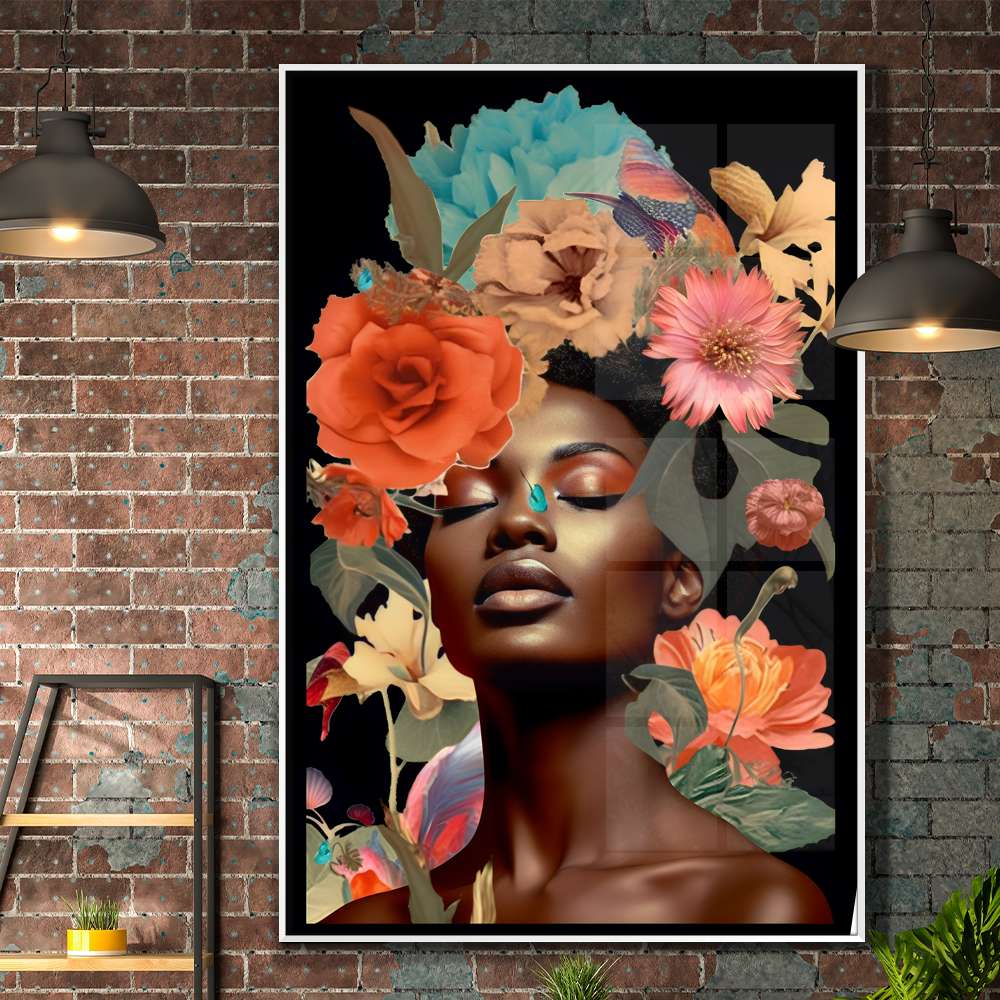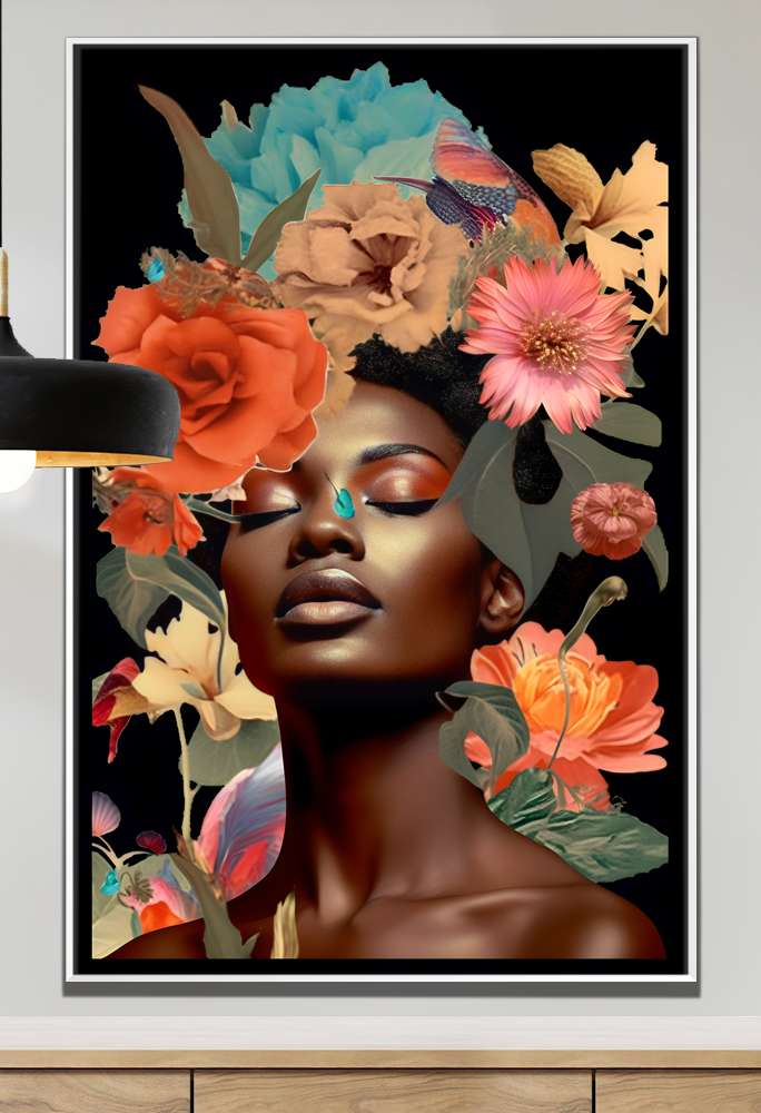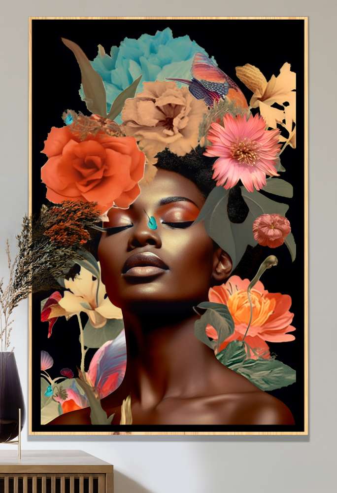 Celebre a harmonia entre natureza e feminilidade com o Quadro Decorativo Colagem de Flores Black Woman. Nesta obra, uma mulher é cercada por flores exuberantes, simbolizando beleza e renovação. Transforme seu ambiente em uma celebração vibrante da natureza e da beleza humana com este quadro encantador. Permita que a energia positiva das flores e da figura feminina tragam vida e cor para o seu espaço, proporcionando uma atmosfera acolhedora e cheia de personalidade. Adquira já o seu quadro e deixe-se envolver por essa fusão de elementos que inspiram a conexão com a natureza e o empoderamento feminino.