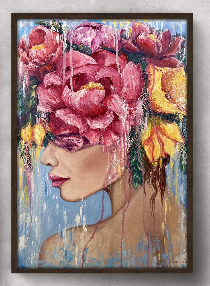 Quadro Decorativo Collage Flowers Pintura de Mulher com Flores na Cabeça