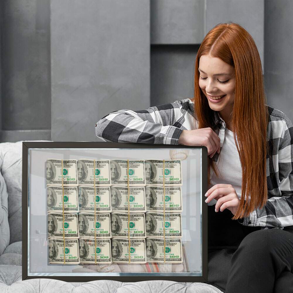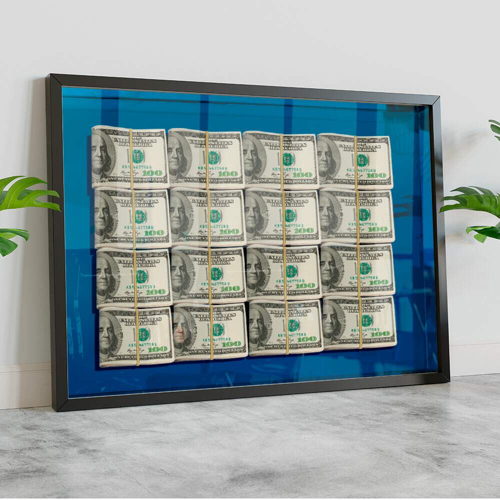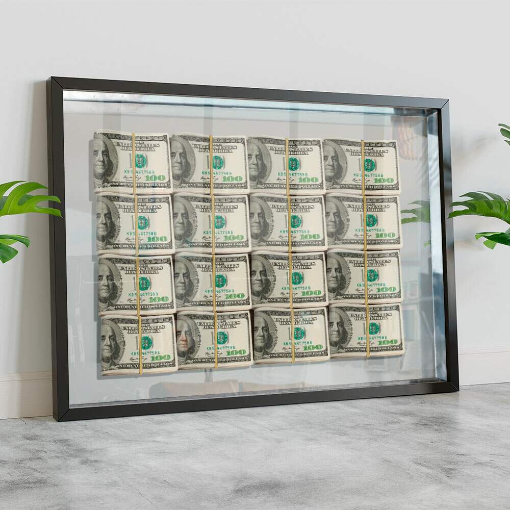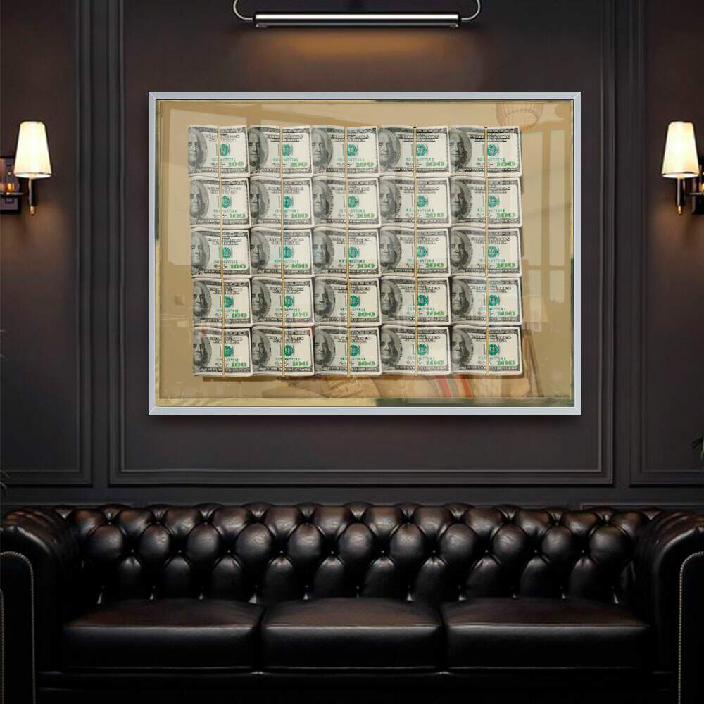 Quadro Decorativo com Dinheiro Notas de 100 Dólar com Espelho
