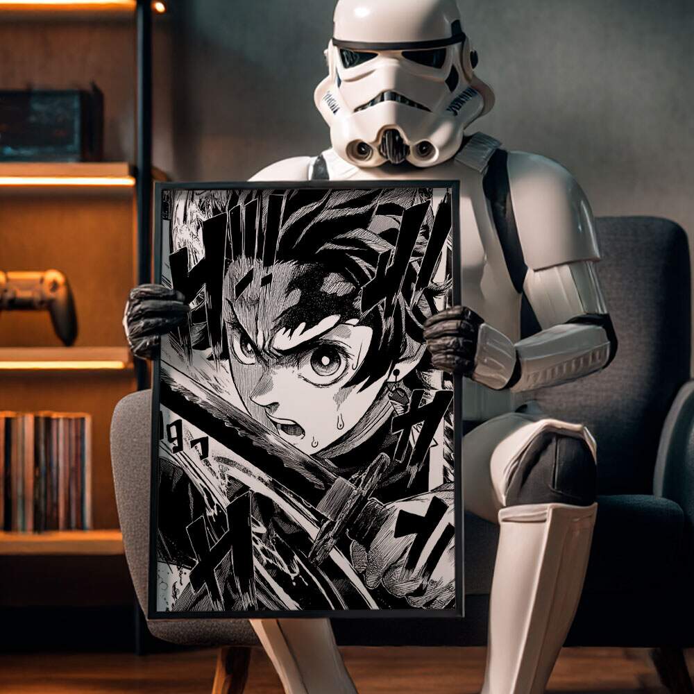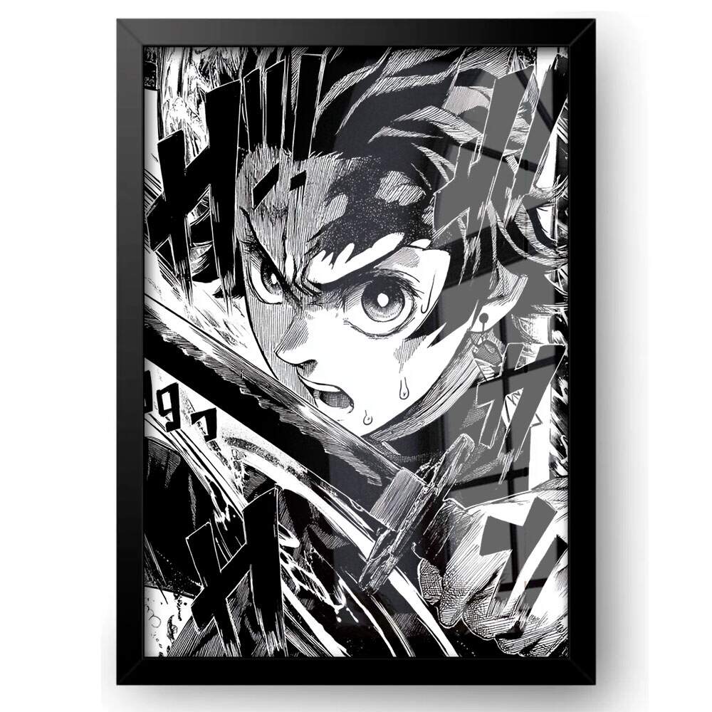 Quadro Decorativo Demon Slayer Preto e Branco