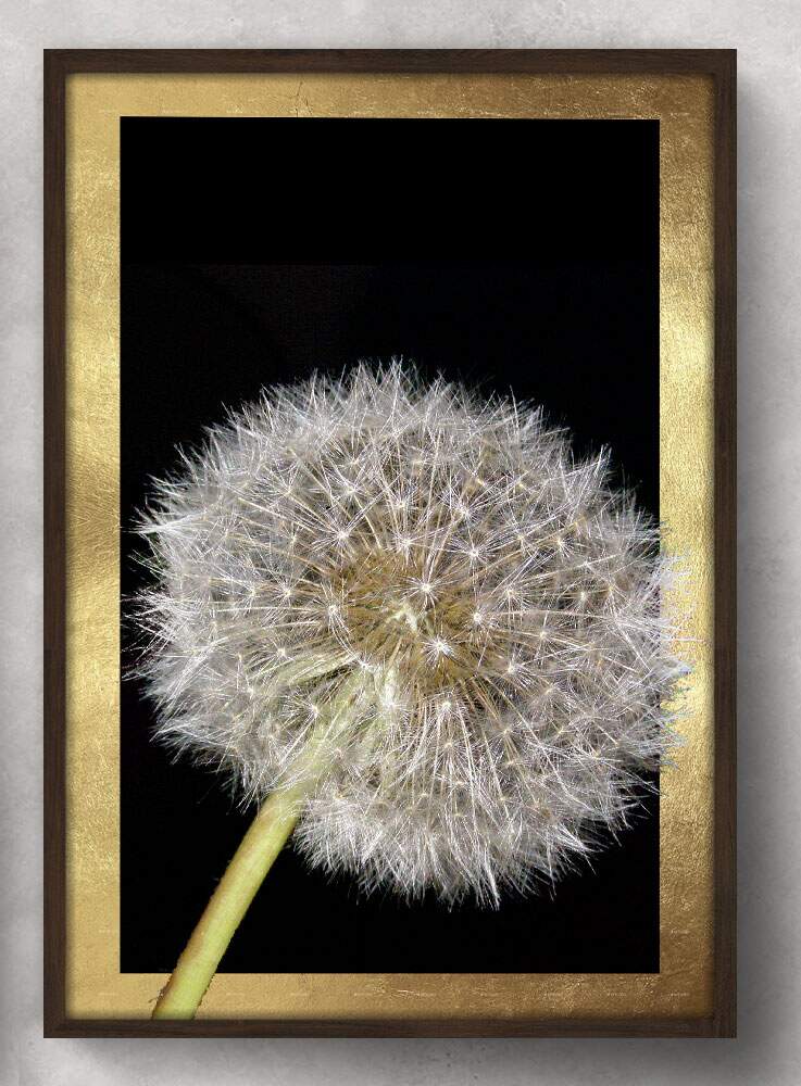 Quadro Decorativo Dente de Leão com Detalhe Dourado
