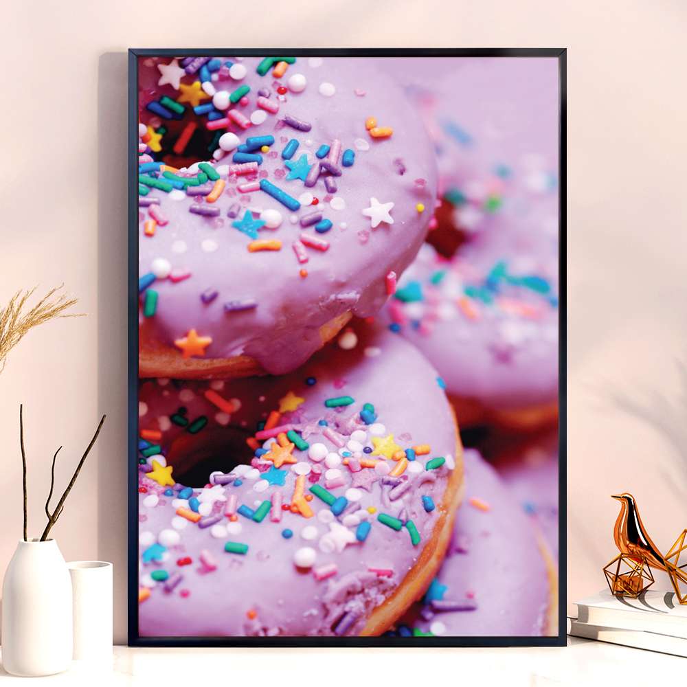 Quadro Decorativo Donuts Com Cobertura e Granulado Colorido