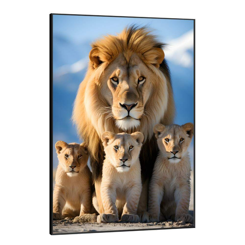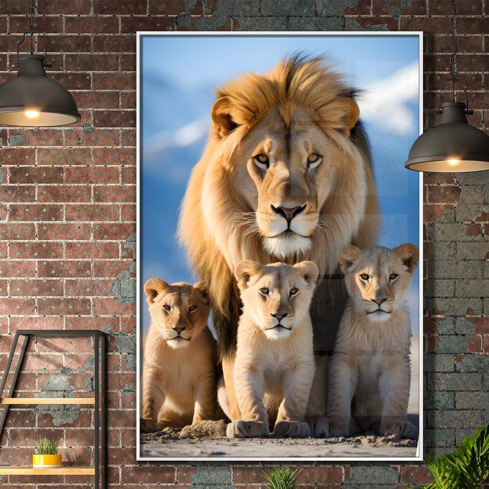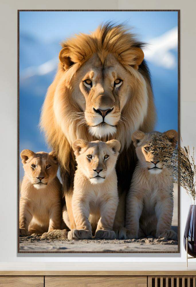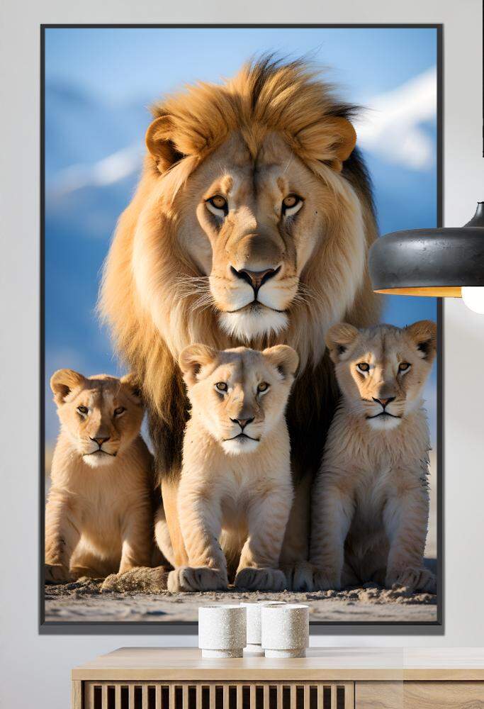 Transmita a beleza e o poder da natureza em sua casa com este quadro decorativo da família de leões. As majestosas criaturas conhecidas como os reis da selva são retratadas com seus filhotes em um momento de olhares intensos, simbolizando força, proteção e união. Deixe a presença imponente desses felinos adornar suas paredes e trazer uma atmosfera selvagem e ao mesmo tempo familiar para o seu ambiente. Aproveite esse toque de natureza selvagem e sofisticação em cada detalhe deste quadro.