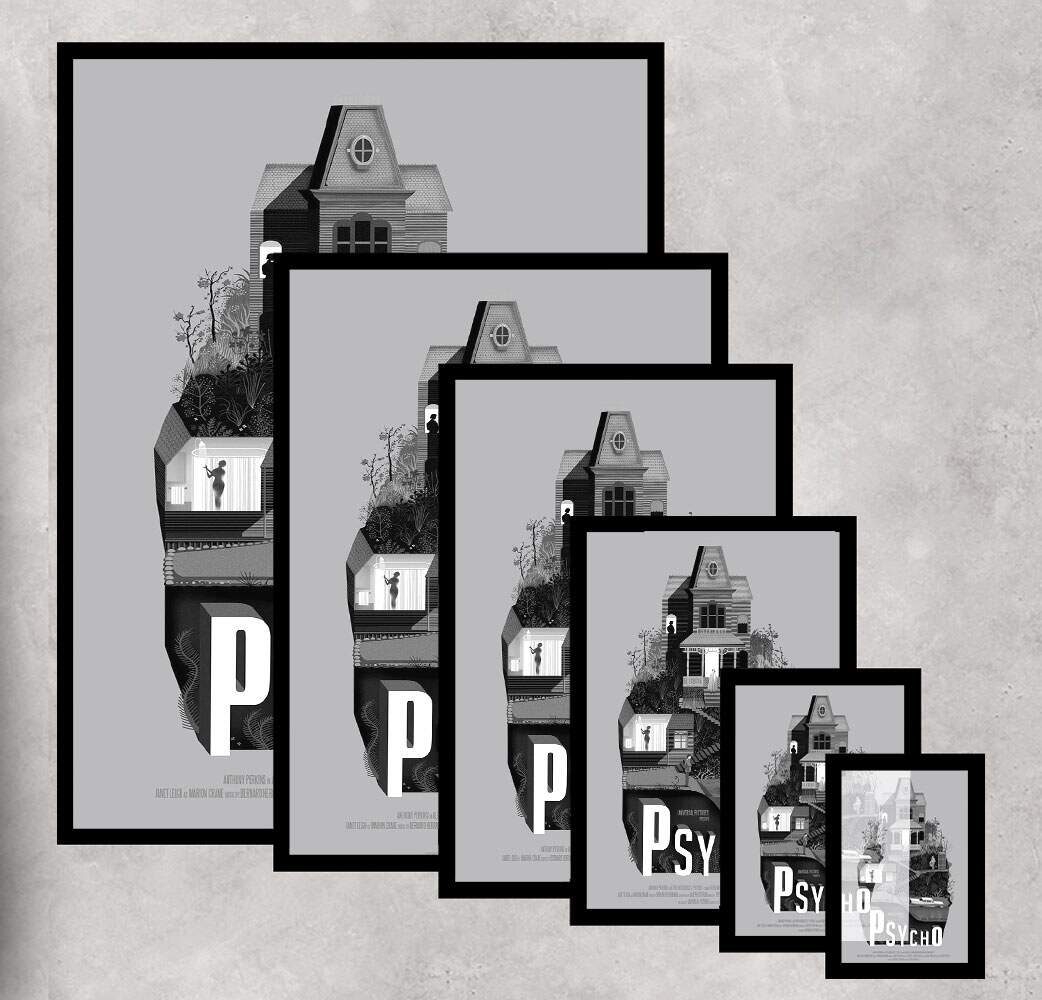 Quarto, psicose, suspense, thriller, Hitchcock, decoração, cinema, filme, quadro decorativo, preto e branco, ambiente temático, fã de filmes, design exclusivo, decoração de paredes, atmosfera cinematográfica.