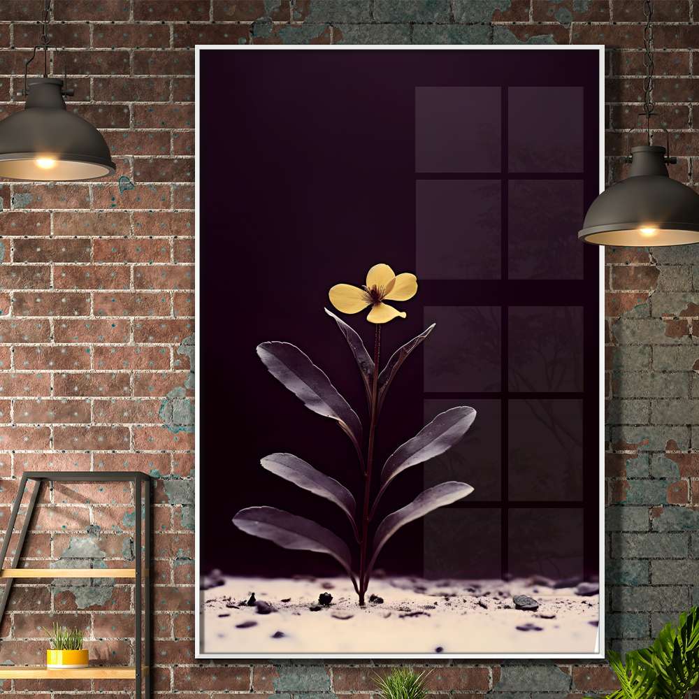Quadro Decorativo Flor Minimalista Pétalas Amarelas Fundo Roxo